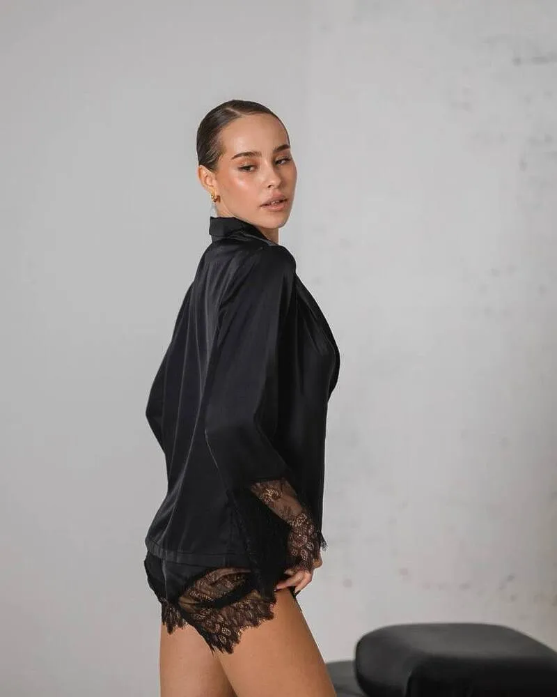 Неймовірно спокусливий піжамний костюм із шовку Армані з мереживом.