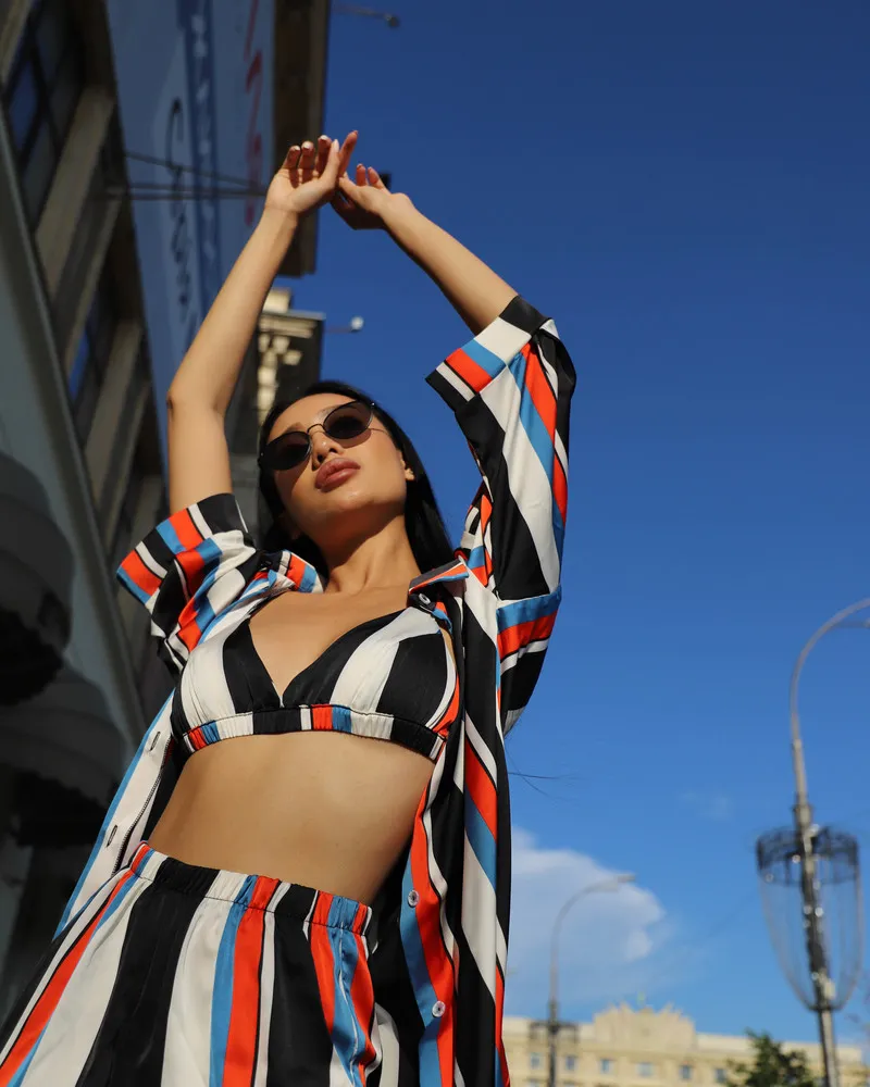 Костюм можна носити як вдома, так і на вулиці, комбінуючи з улюбленим взуттям так аксесуарами.