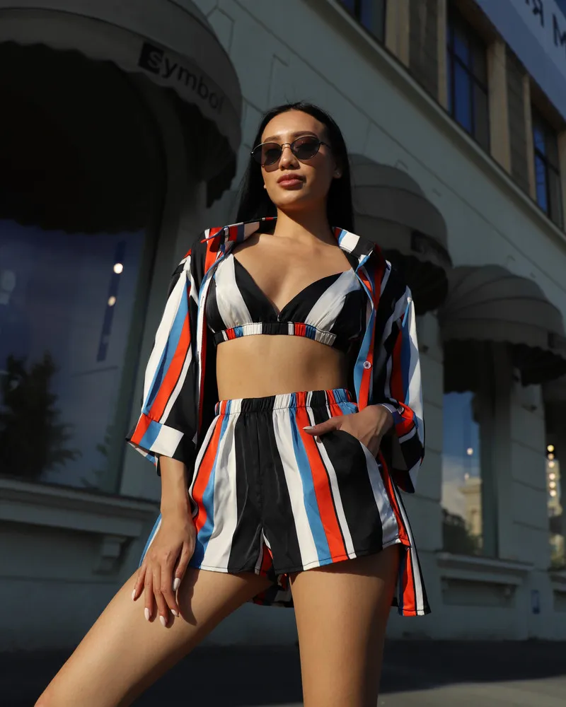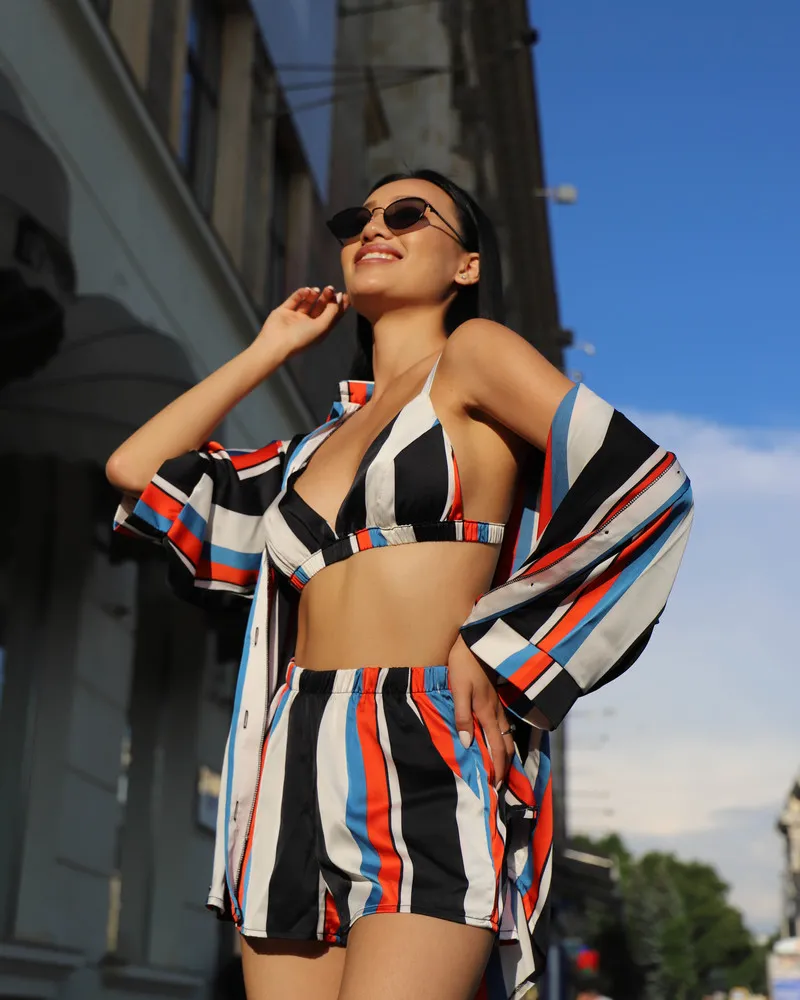 Комплект: сорочка на ґудзиках, ліф на застібці та короткі шорти на резинці.