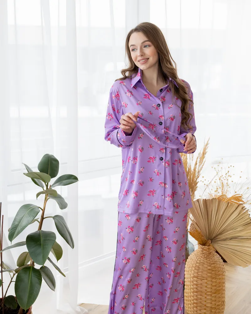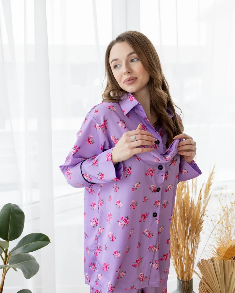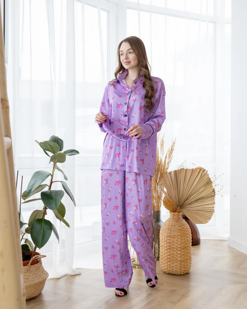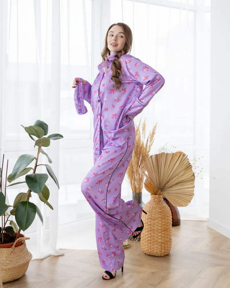 Піжама шовк Армані Італія преміум-класу Flowers Лавандовий