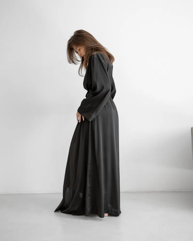 Елегантний халат з шовкової тканини Armani в довжині максі.