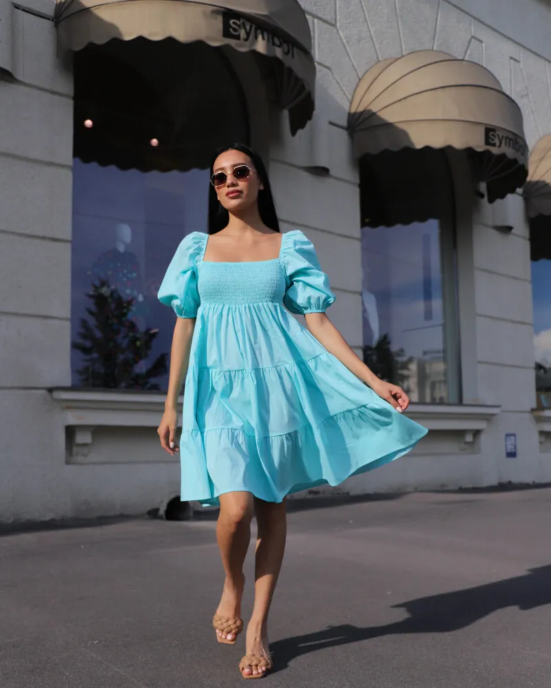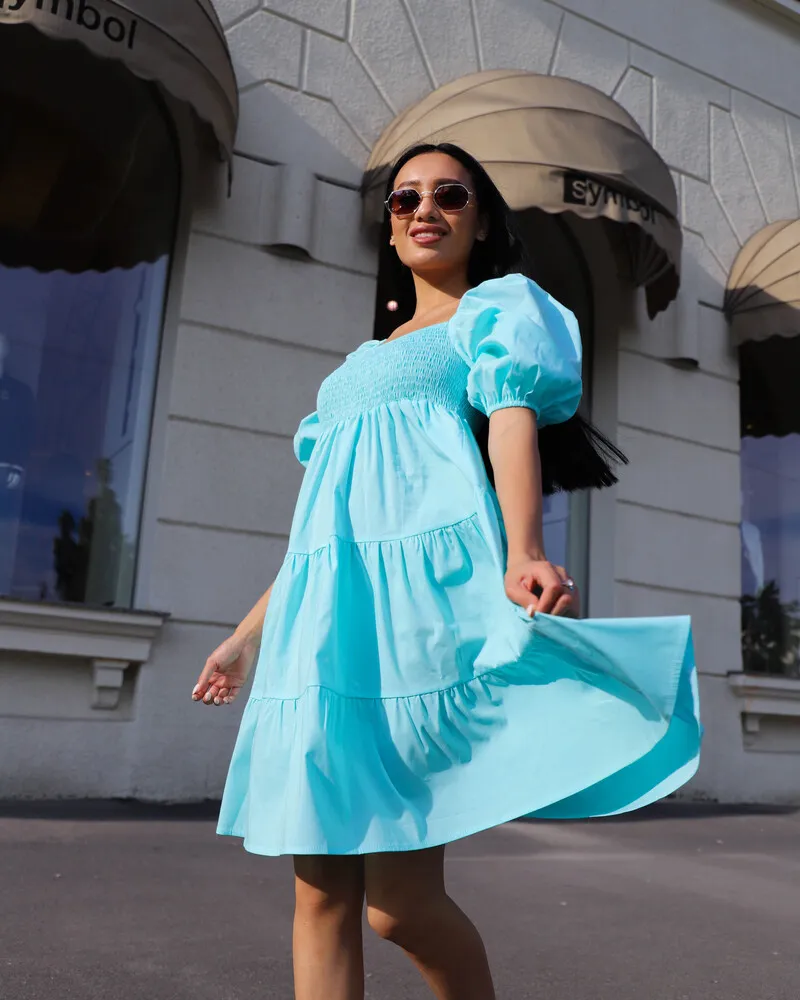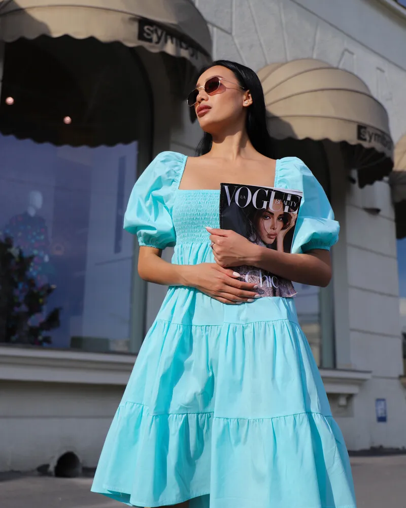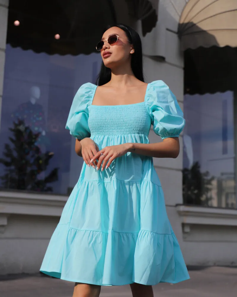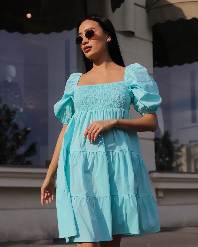 Короткі рукава-ліхтарики, еластична зручна резинка на грудях та яруси - це неймовірне поєднання, що яскраво доповнить Ваш гардероб новими фарбами!