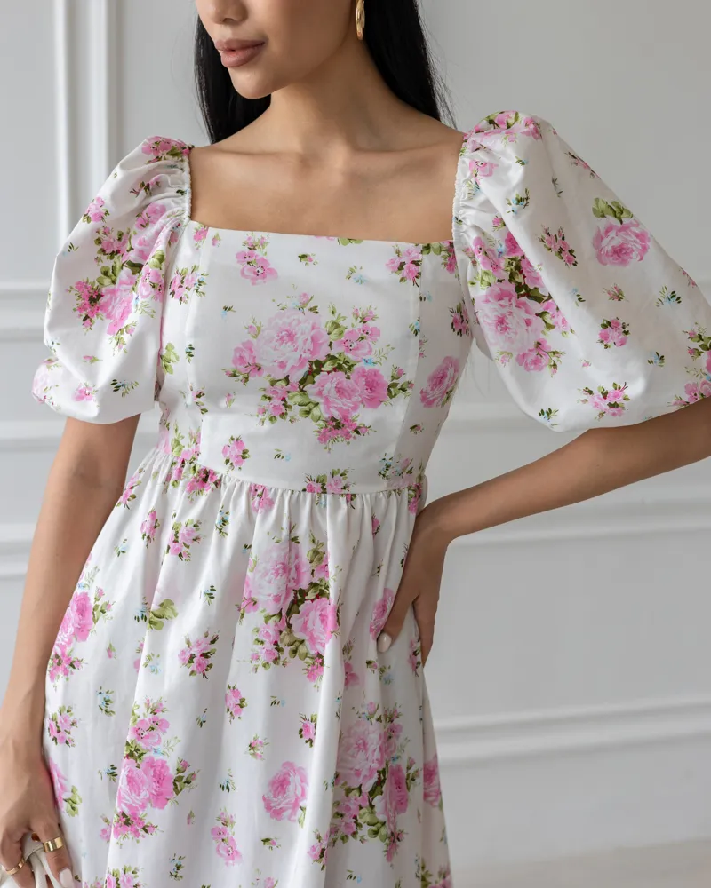 Сукня вироблена ​​з натурального бавовняного матеріалу в квітковий принт.