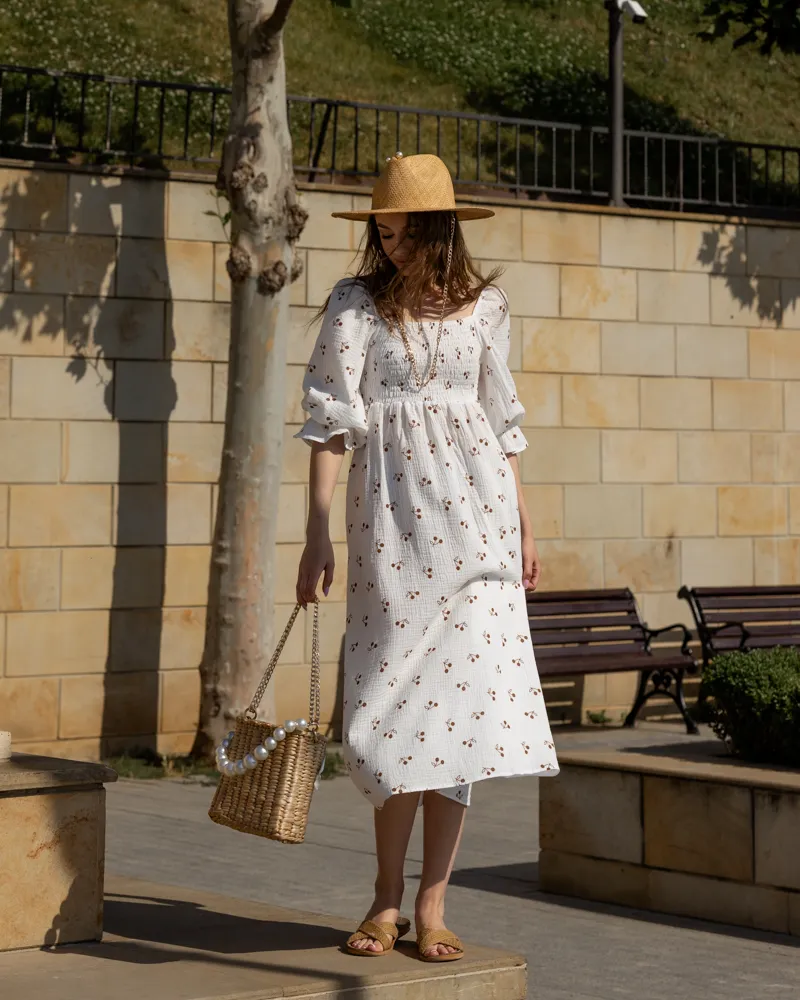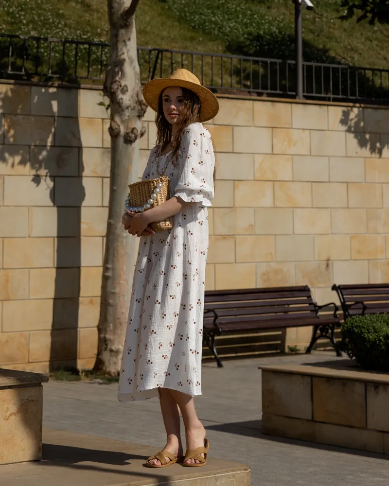 Повітряна та легка сукня міді з мусліну (100% бавовна).