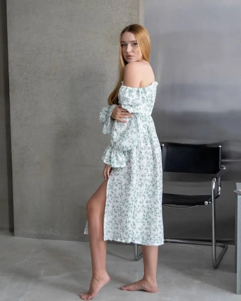Повітряна та легка сукня міді з розрізом на ніжці з натуральної бавовни.