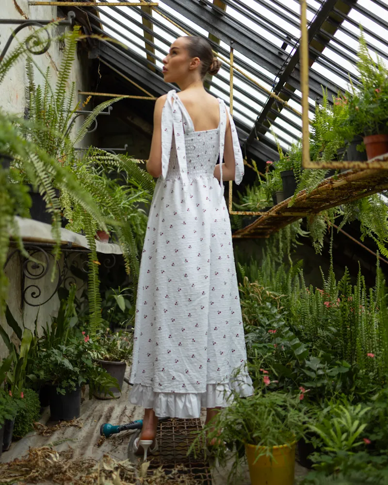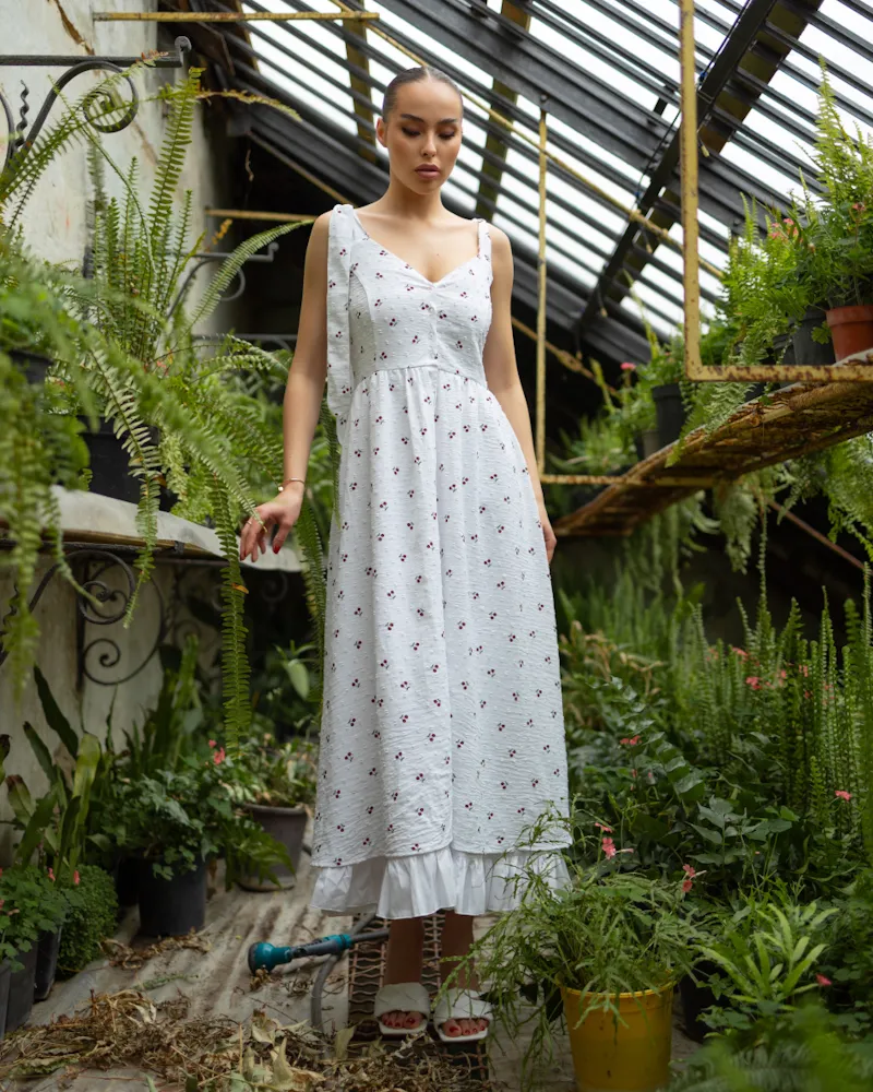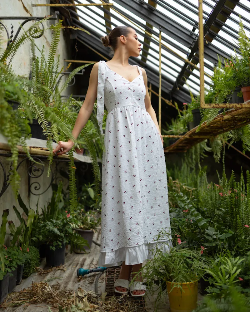 Легка та ніжна літня сукня-міді з натурального матеріалу бавовна.