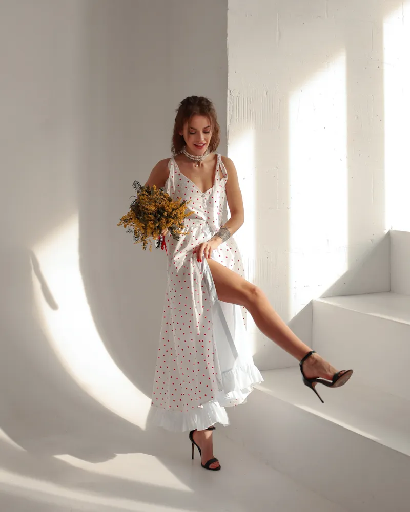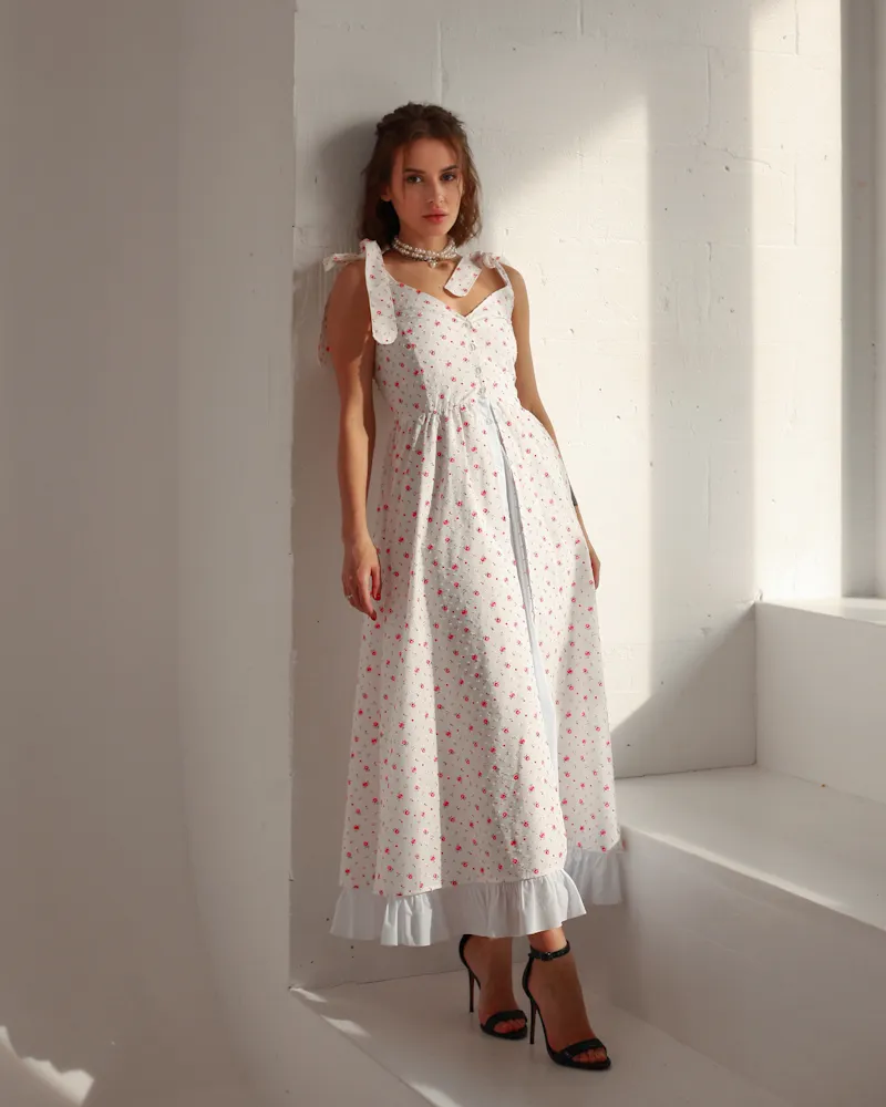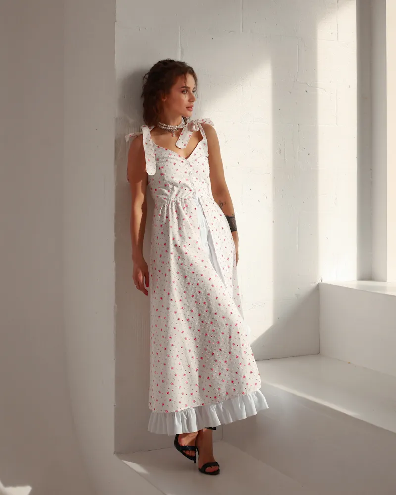 Легка та ніжна літня сукня-міді з натурального матеріалу бавовна.