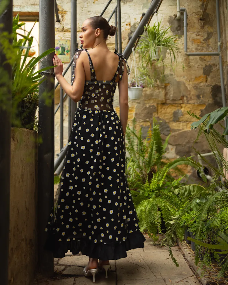 Сукня "Katrina" тканина батист + сітка Ромашки на чорному