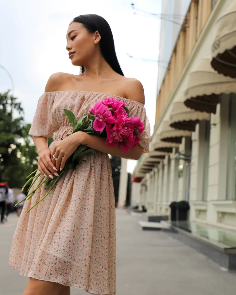 Верх сукні представлений у вигляді еластичної резинки, яку зручно регулювати як Вам подобається, можна оголити плечі, тим самим зробити Ваш образ дуже ніжним та легким.