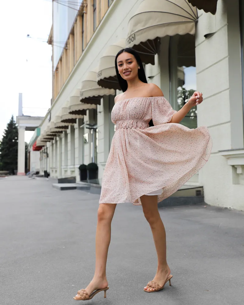 Повітряна сукня-міні із тканини шифон преміум якості.