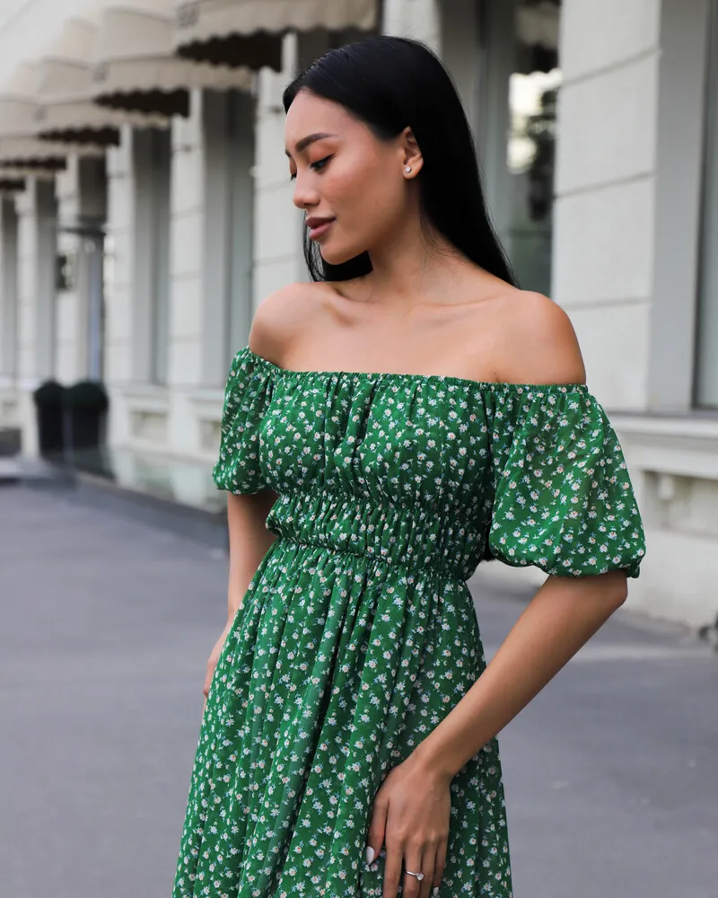 Верх сукні представлений у вигляді еластичної резинки, яку зручно регулювати як Вам подобається, можна оголити плечі, тим самим зробити Ваш образ дуже ніжним та легким.