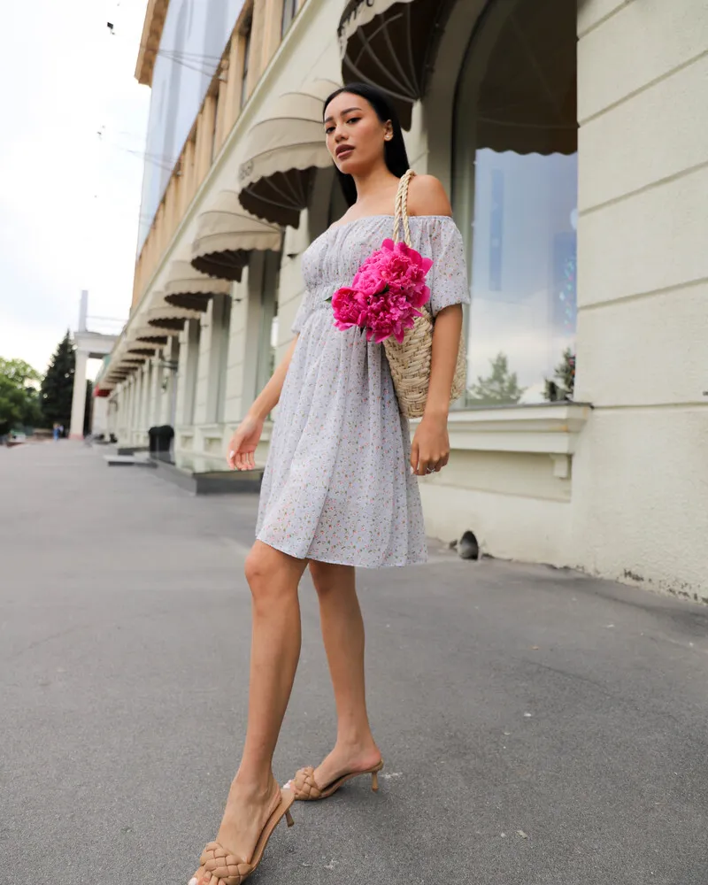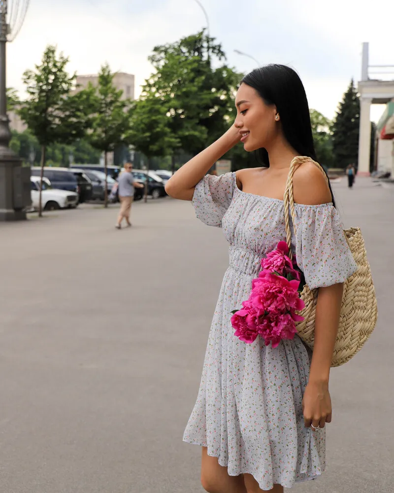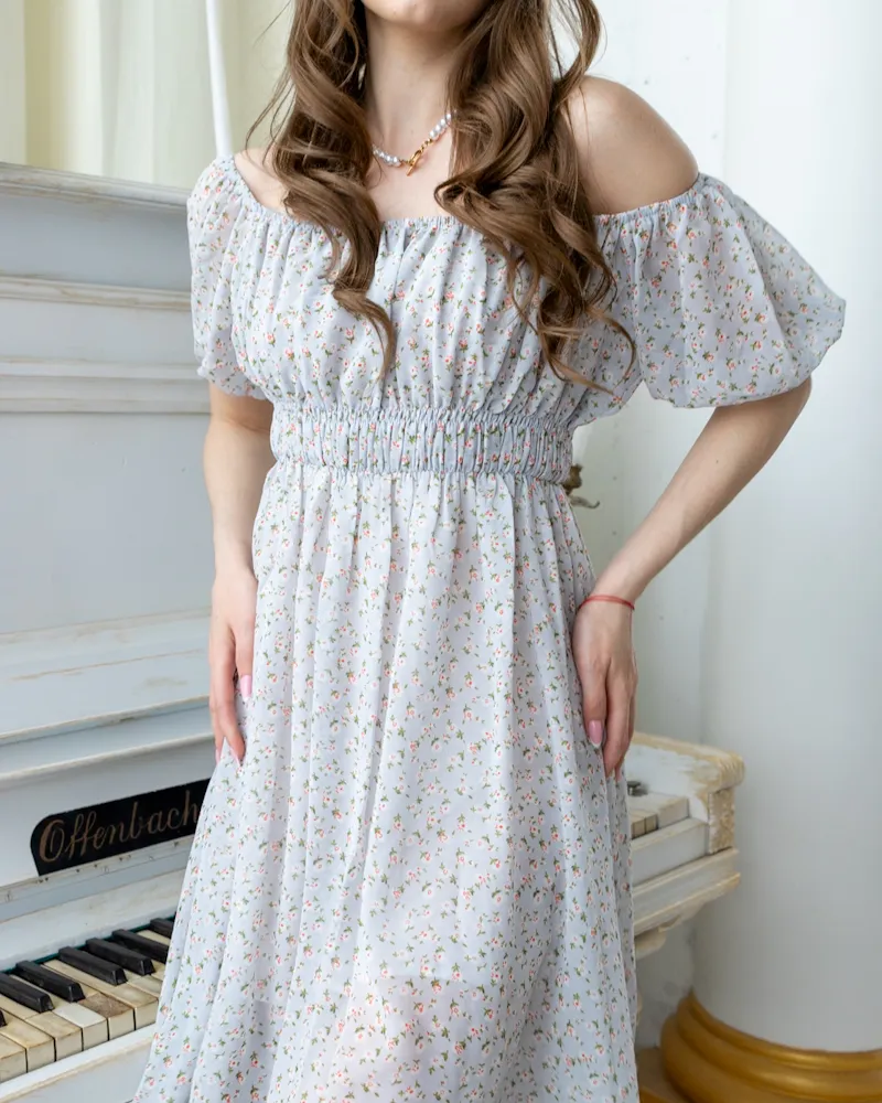 Верх сукні представлений у вигляді еластичної резинки, яку зручно регулювати як Вам подобається, можна оголити плечі, тим самим зробити Ваш образ дуже ніжним та легким.