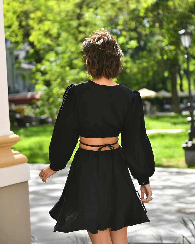 Чарівна сукня-міні із тканини муслін, яка така легка та невідчутна на тілі. Чудово пропускає повітря та дуже приємна на дотик.Модель із рукавами-ліхтариками на манжетах, талія прикрашена зав'язкою та резинкою, що чудово підкреслює фігуру. У такій сукні Ви відчуєте себе грайливою та неймовірно звабливою!