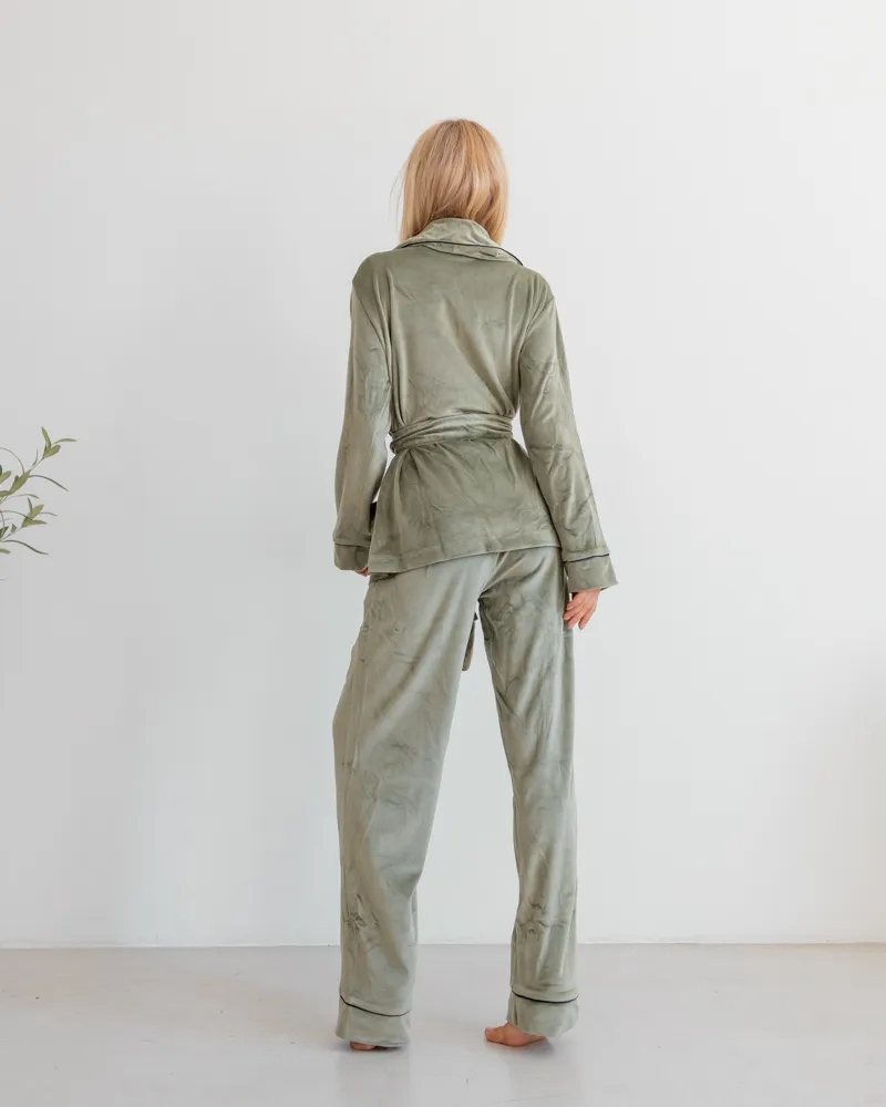 Піжама велюр Eva на запах Фісташковий