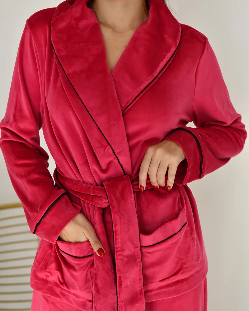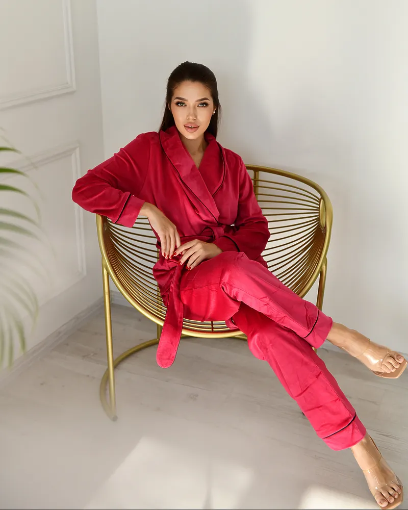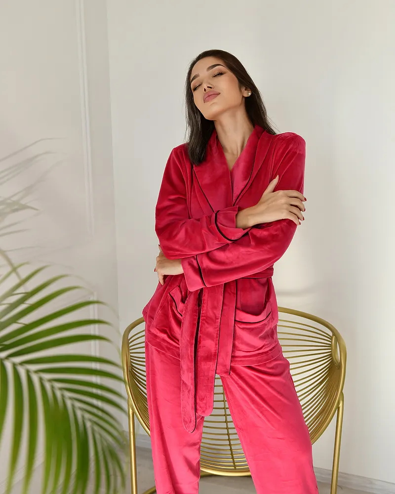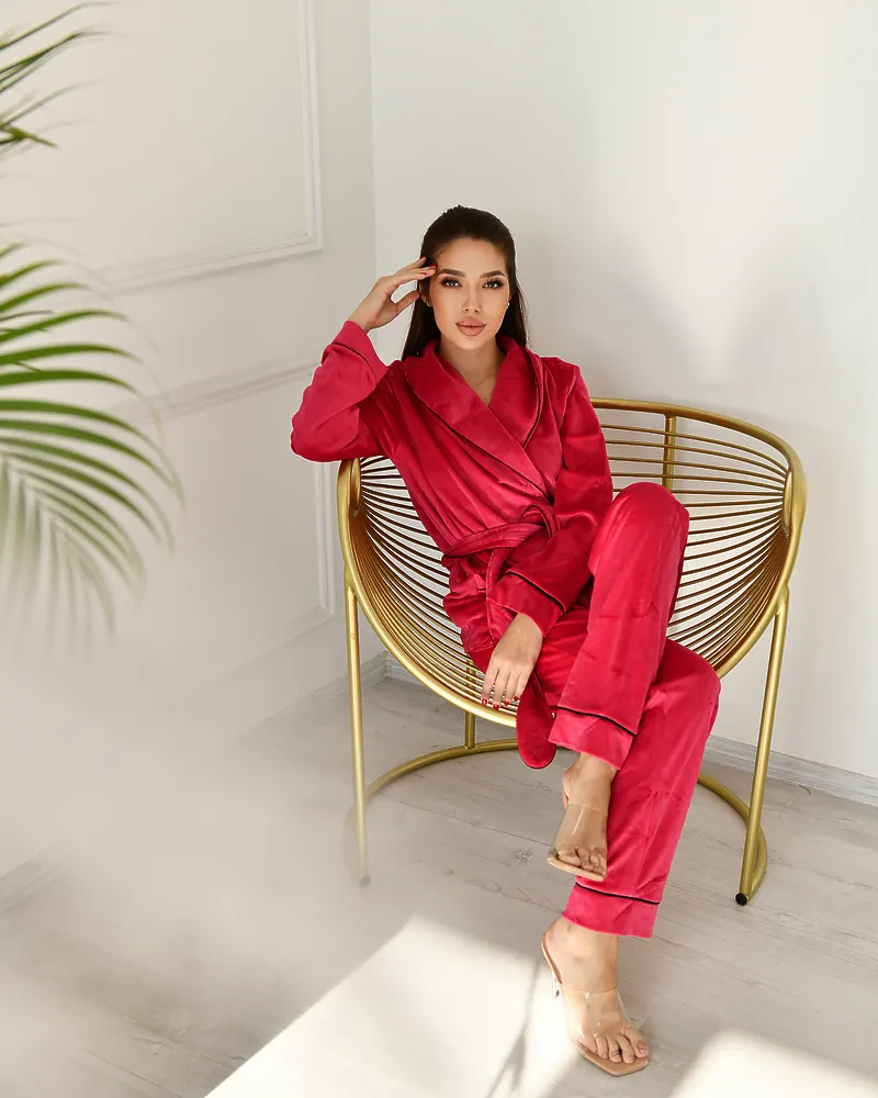 Головна / Каталог / Жінкам / Жіноча піжама / Піжама велюр Eva на запах Малиновий