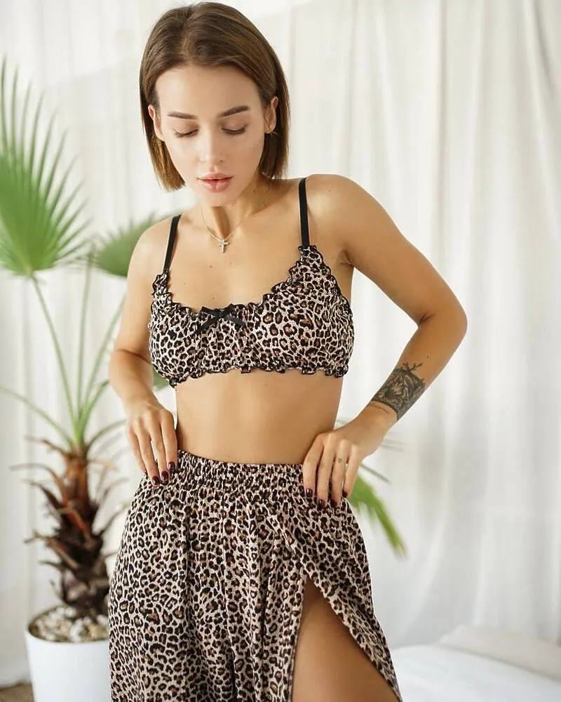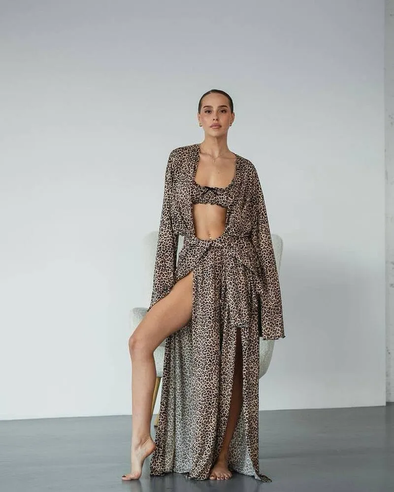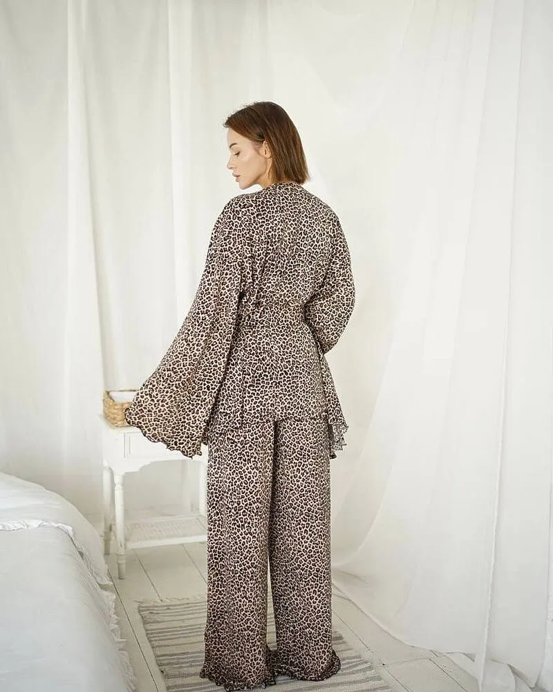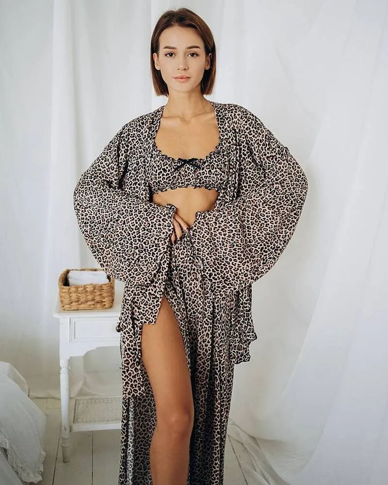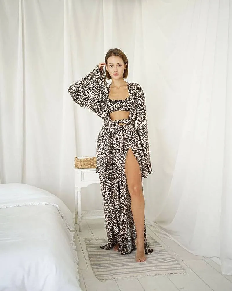 Домашній костюм "Afina" (халат+топ+штани) трикотаж двунитка Леопардовий