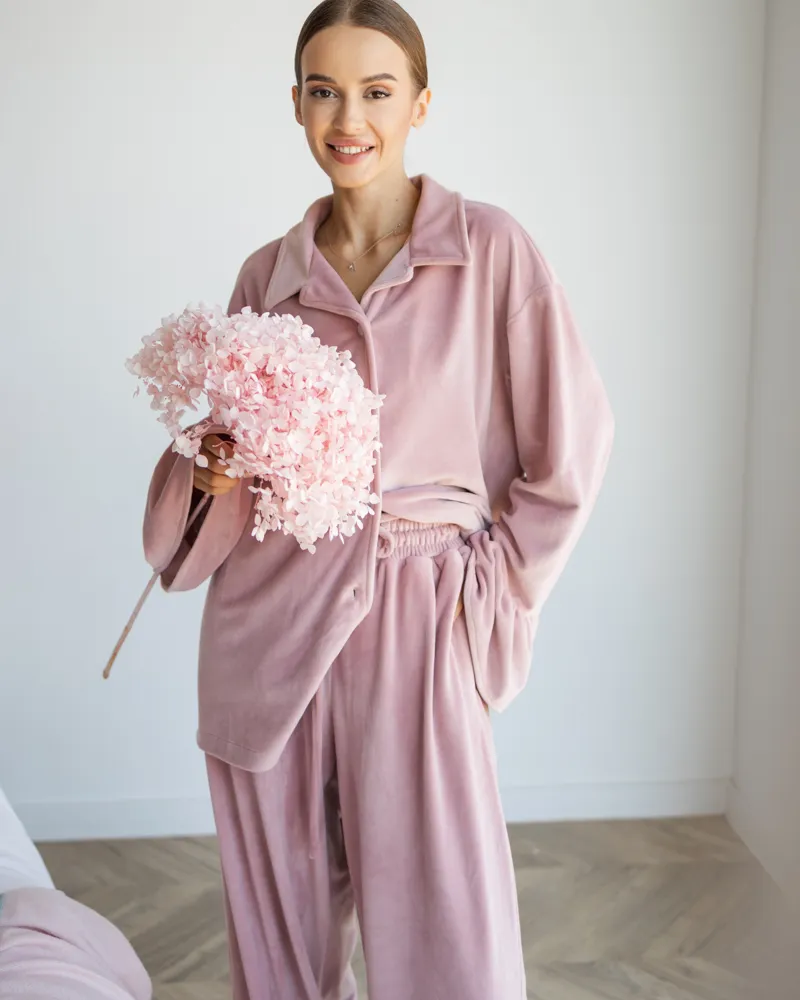 Головна / Каталог / Жінкам / Домашній костюм / Домашній костюм "Capri" тканина велюр Пудра