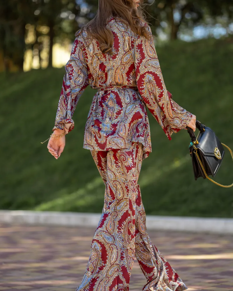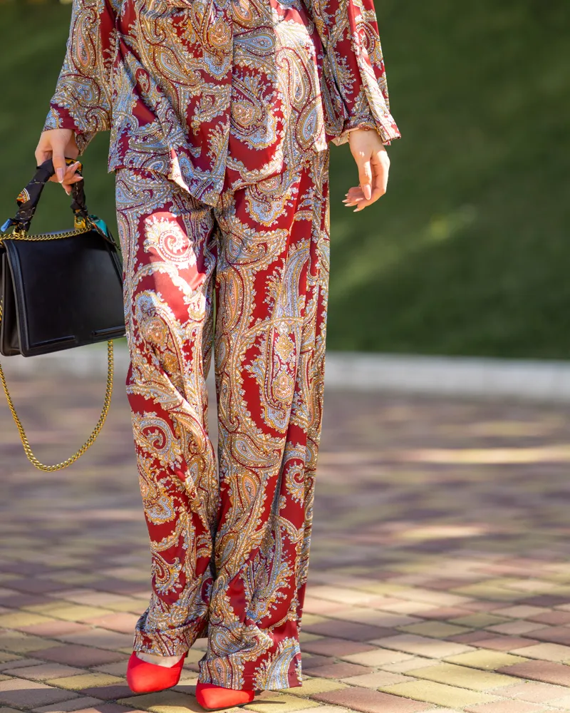 Комплект: Сорочка + Штани прямого крою. Класичні штани вільного крою з резинкою на талії і кишенями. Сорочка з поясом на талії, що дозволить скорегувати силует. Виконаний з приємного до тіла шовку Армані. Чудово підійде для літніх прогулянок або для домашнього дозвілля.