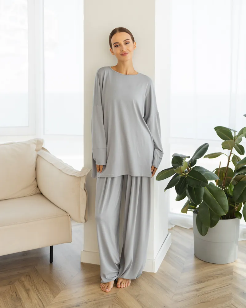 Головна / Каталог / Жінкам / Домашній костюм / Домашній костюм "Kira" тканина трикотаж Сірий