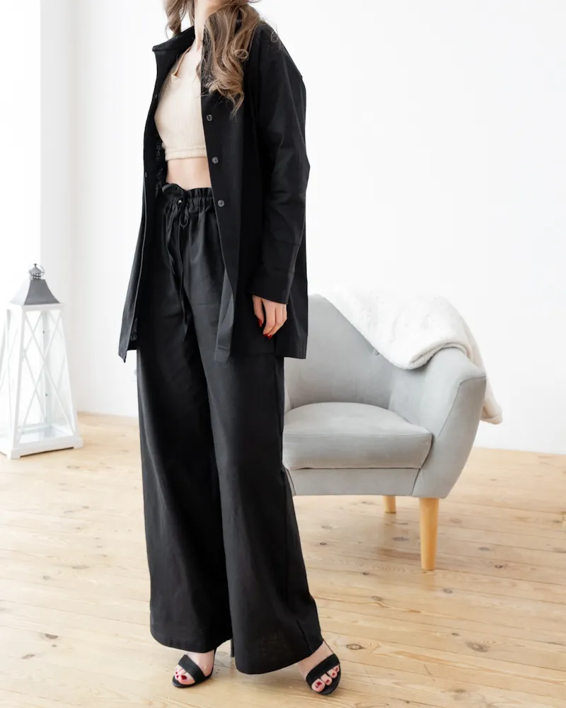 Головна / Каталог / Жінкам / Домашній костюм / Домашній костюм із льону Gabriel Чорний