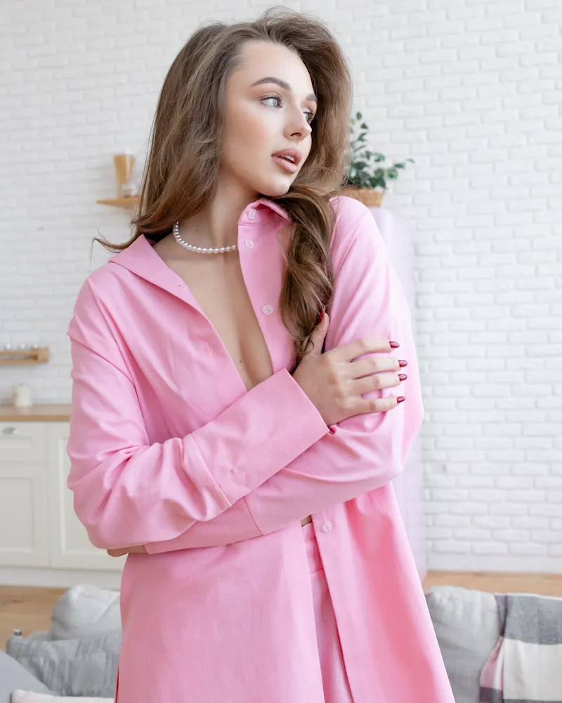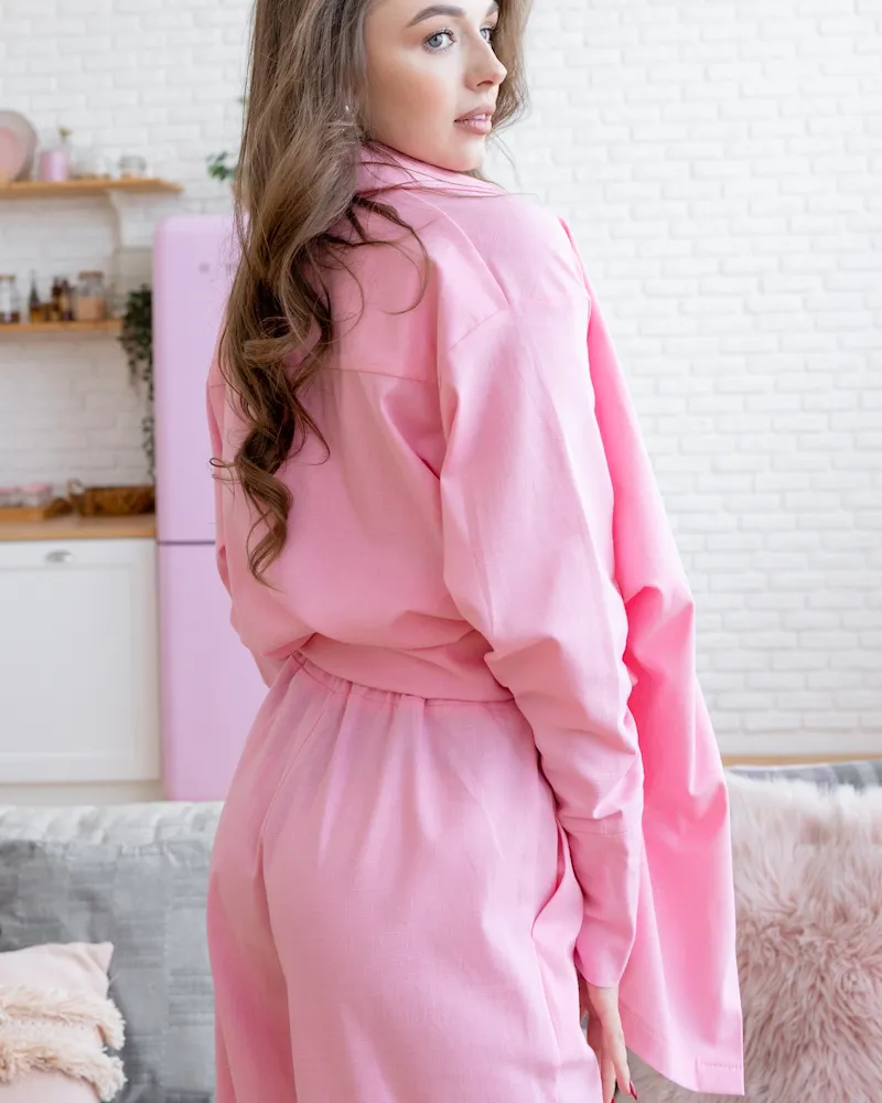 Головна / Каталог / Жінкам / Домашній костюм / Домашній костюм із льону Gabriel Рожевий