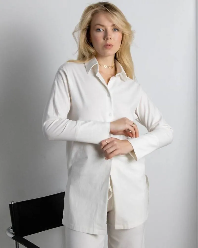 Комплект: довга сорочка на ґудзиках із манжетами та штани вільного крою - кльош на резинці із зав'язкою.