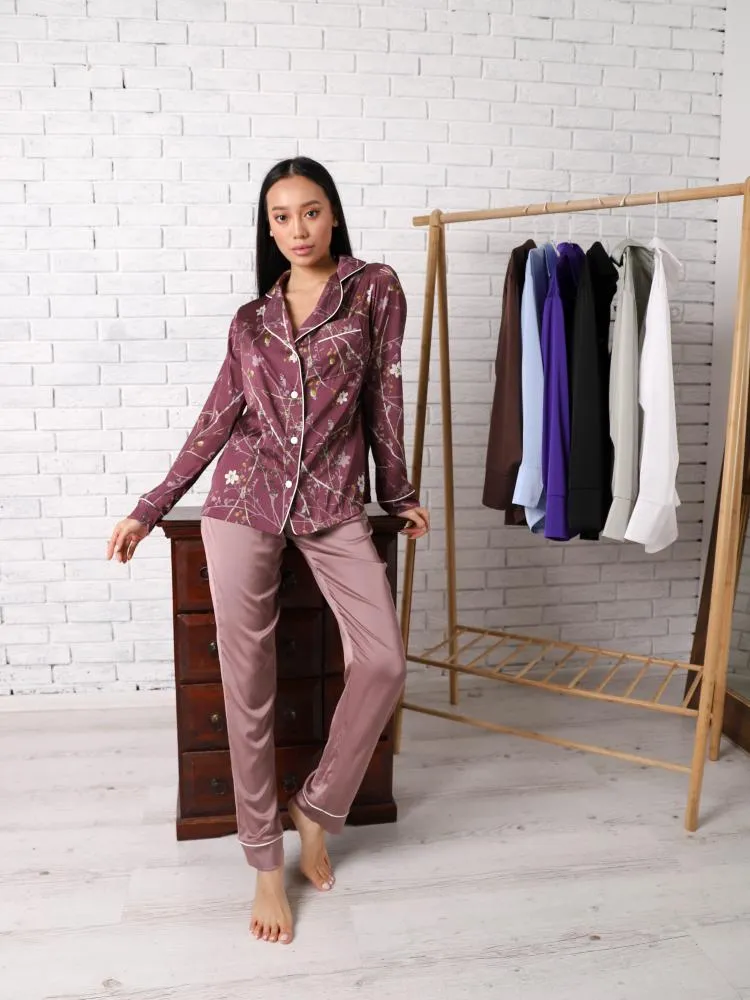 Домашній костюм з шовку Carmen на ґудзиках Сливовий