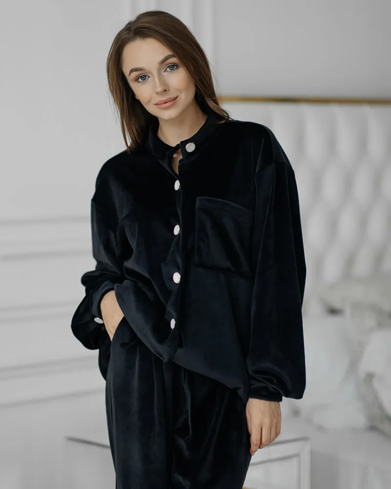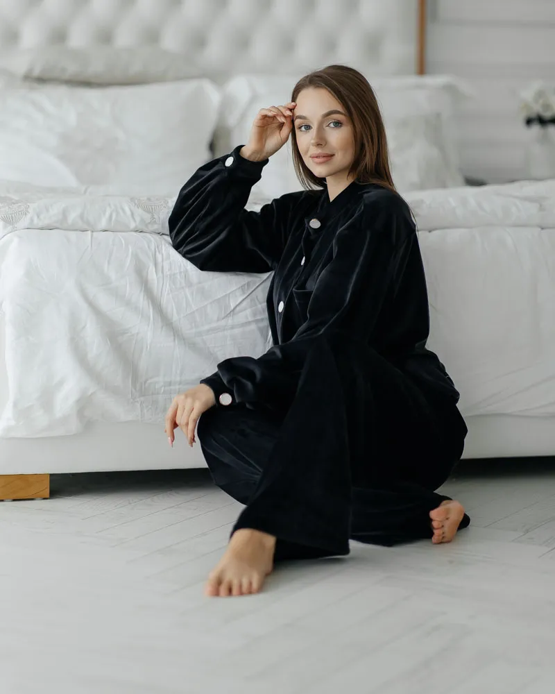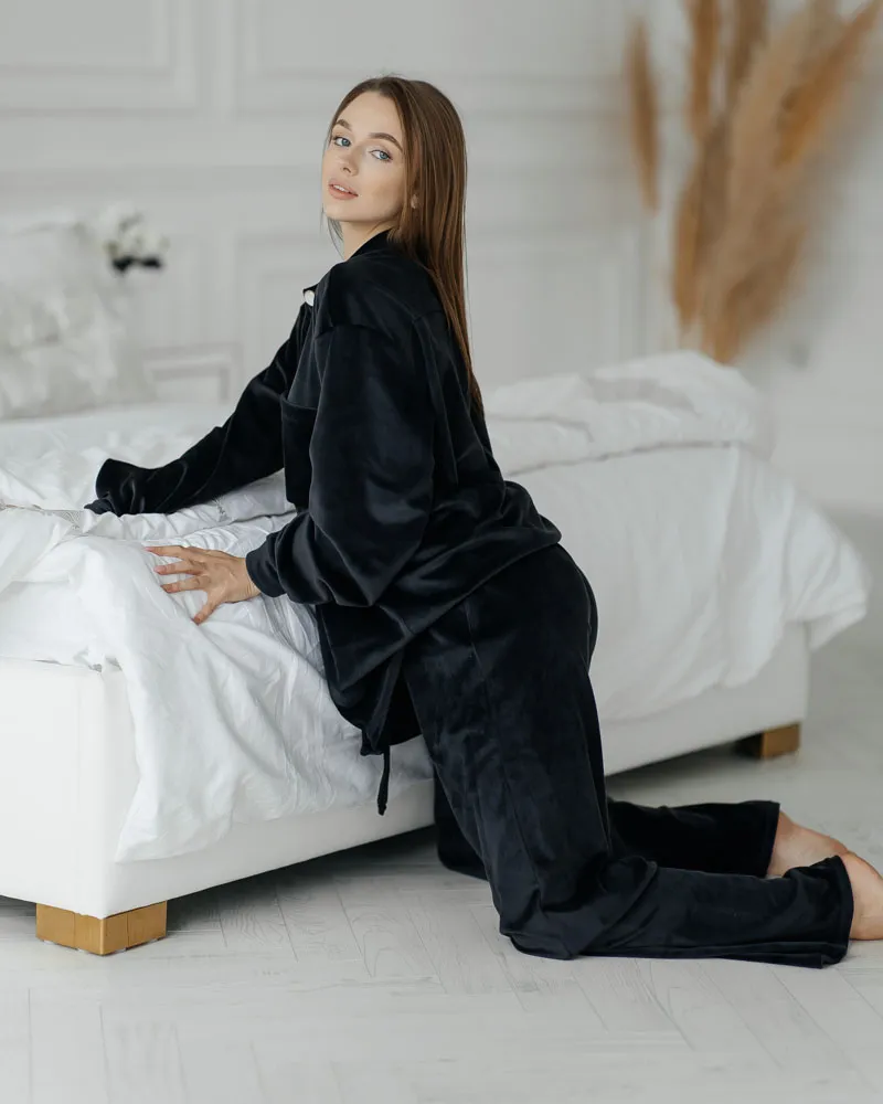 Головна / Каталог / Жінкам / Домашній костюм / Домашній костюм велюр "Emma" чорний