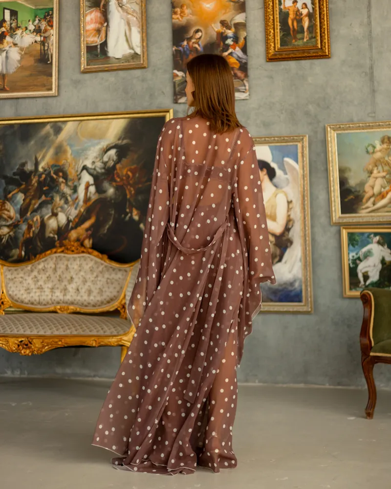 Домашній костюм-трійка "Evelina" (халат+ліф+штани) тканина шифон Коричневий