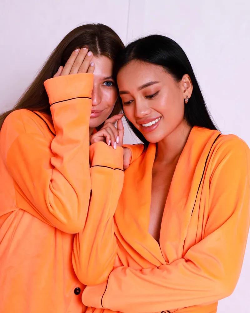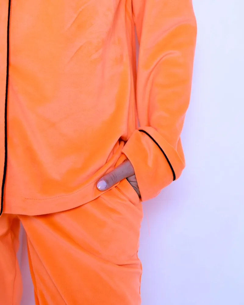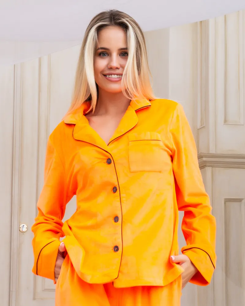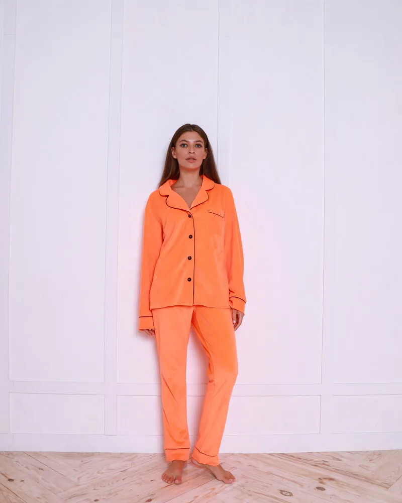 Головна / Каталог / Жінкам / Жіноча піжама / Піжама велюр Jeny на ґудзиках Помаранчевий неон