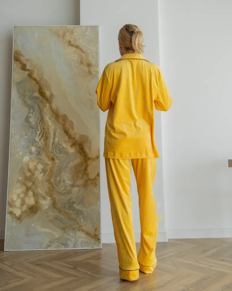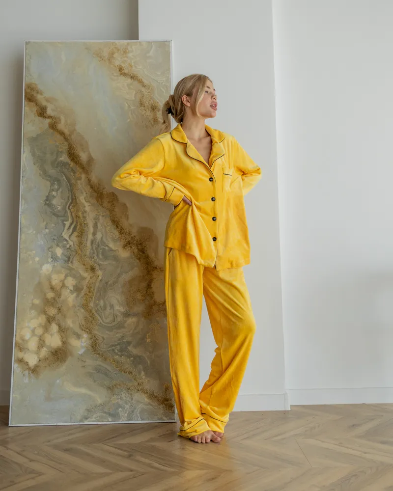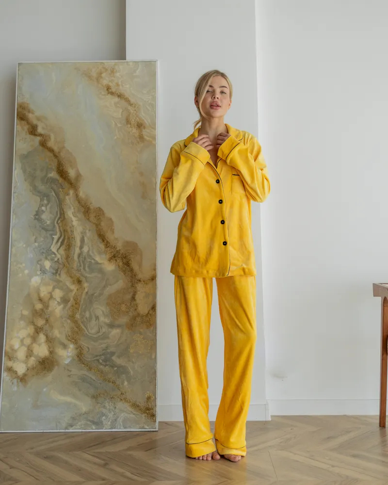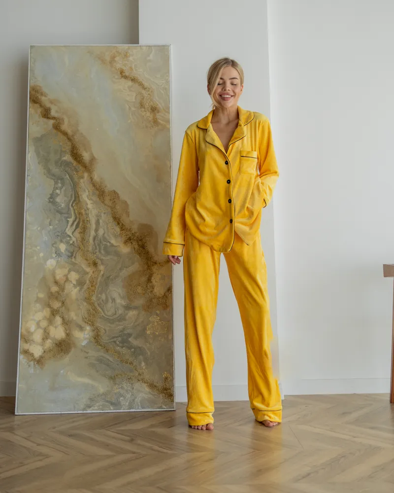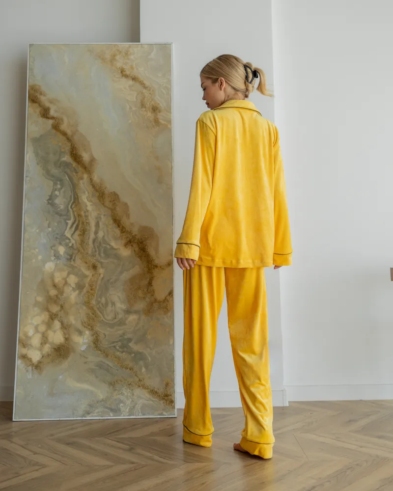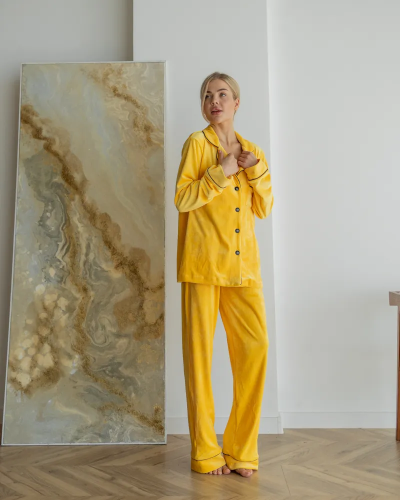 Головна / Каталог / Жінкам / Жіноча піжама / Піжама велюр Jeny на ґудзиках Жовтий