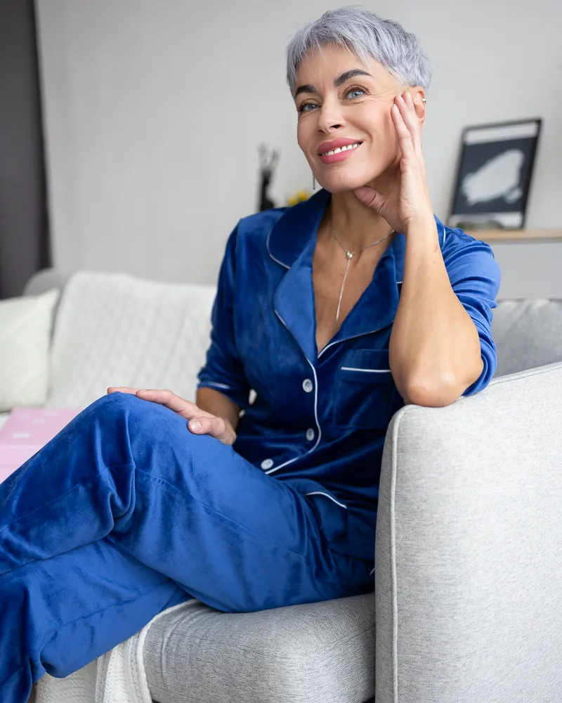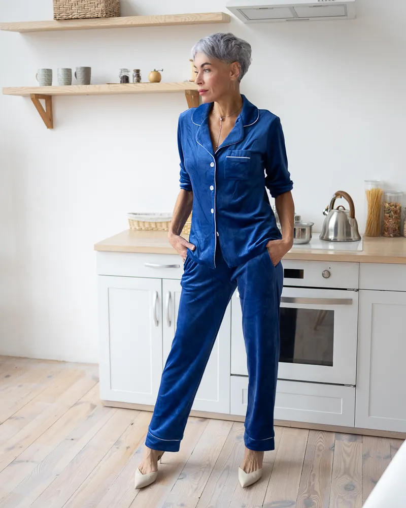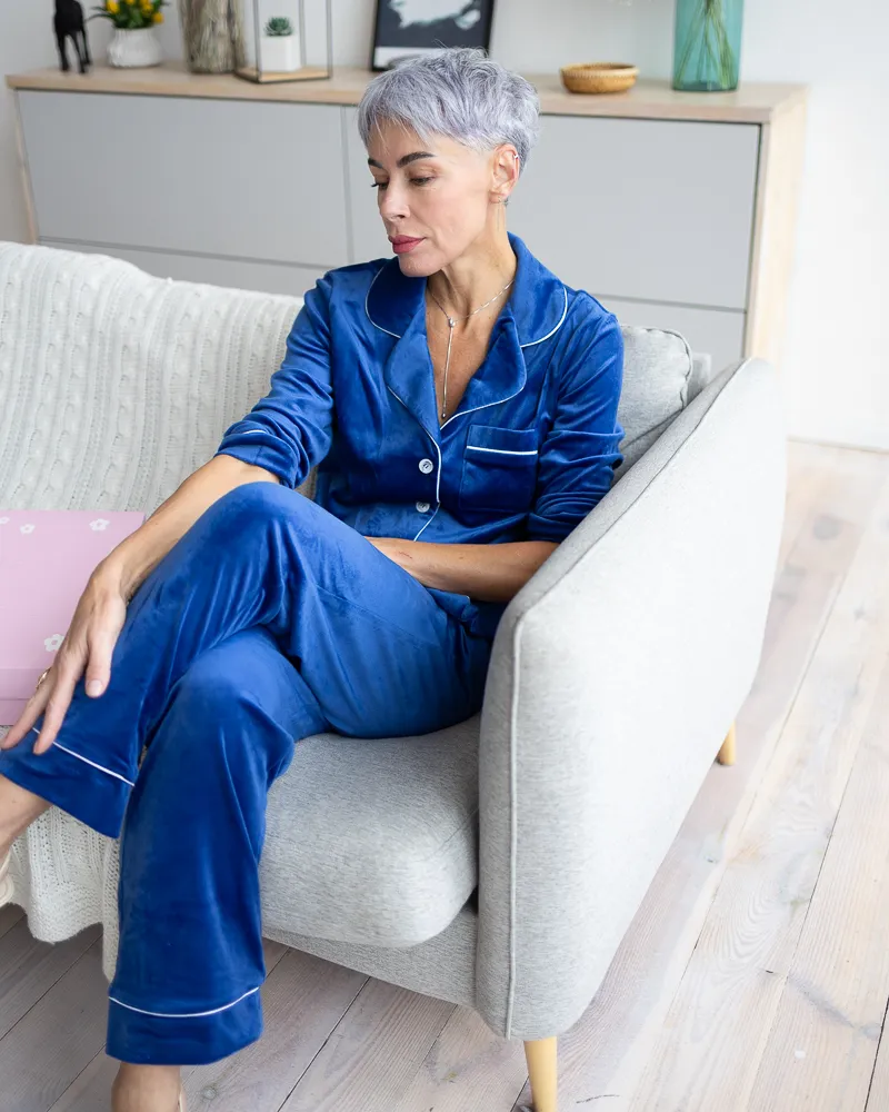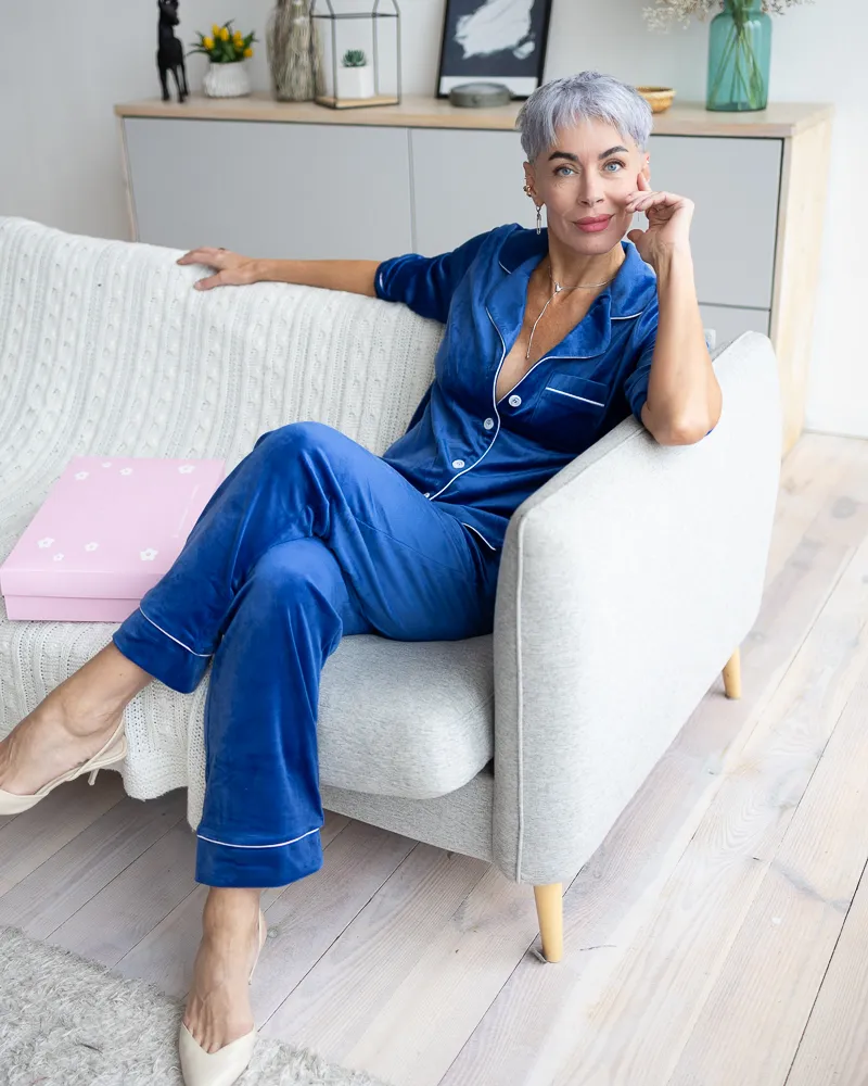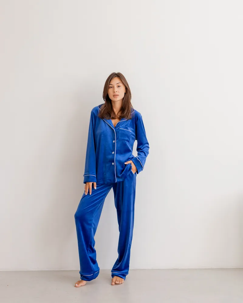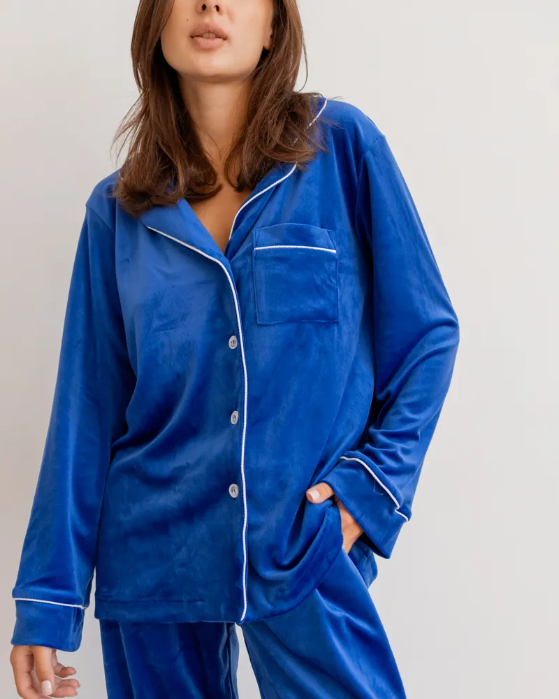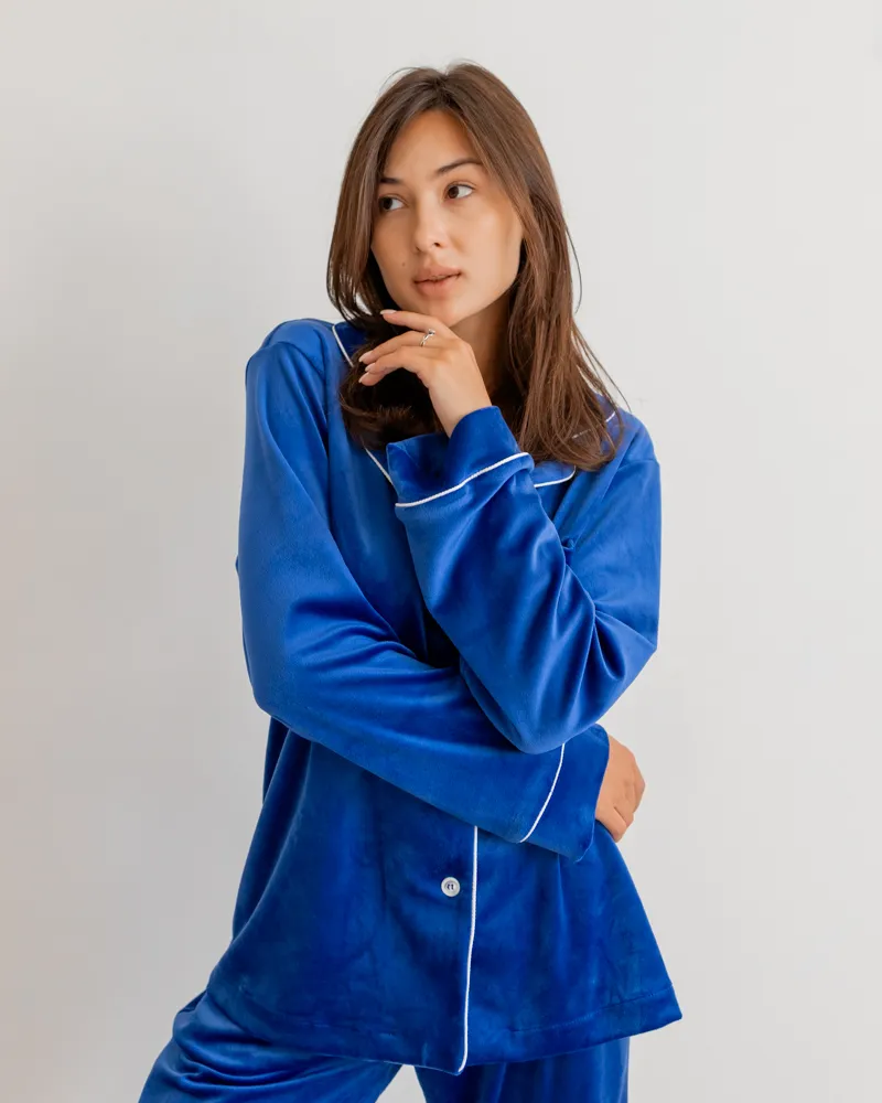 Головна / Каталог / Жінкам / Жіноча піжама / Піжама велюр Jeny на ґудзиках Електрик
