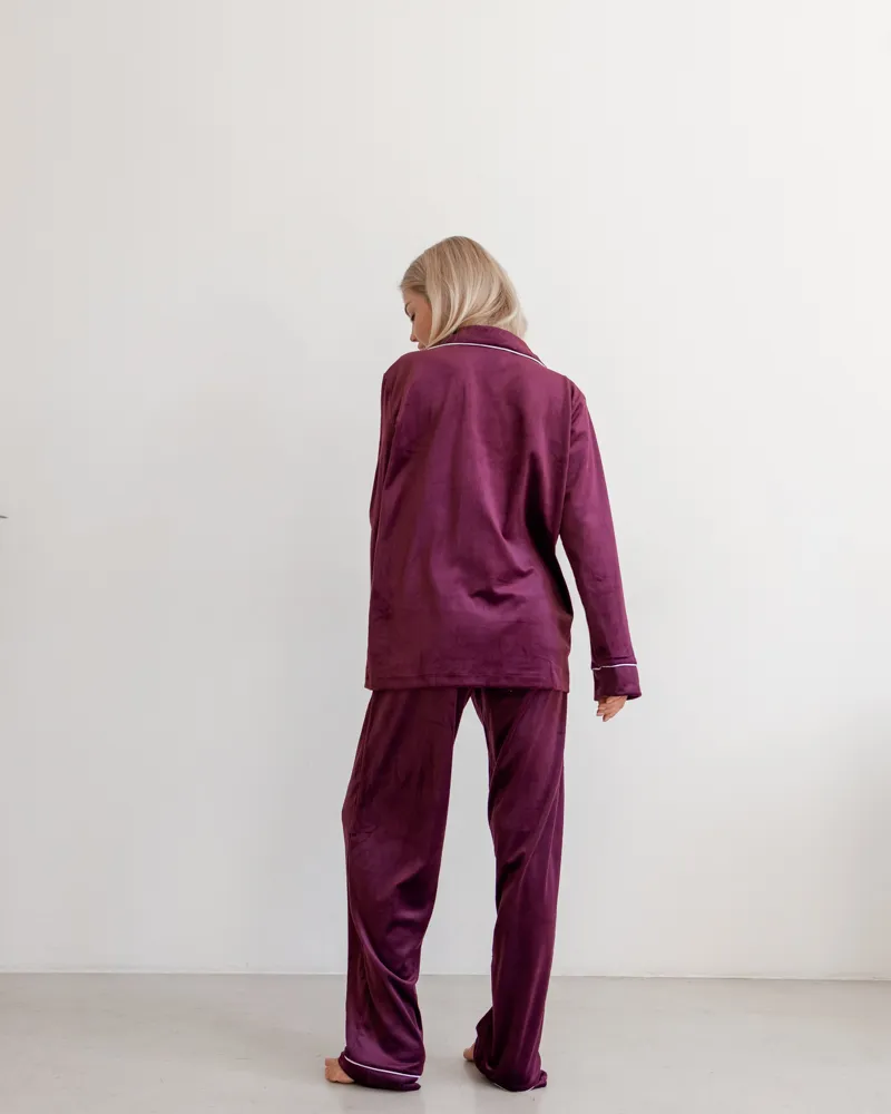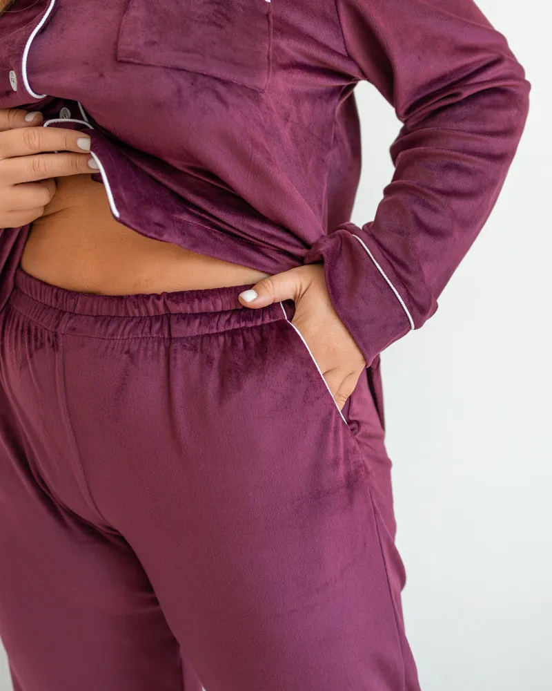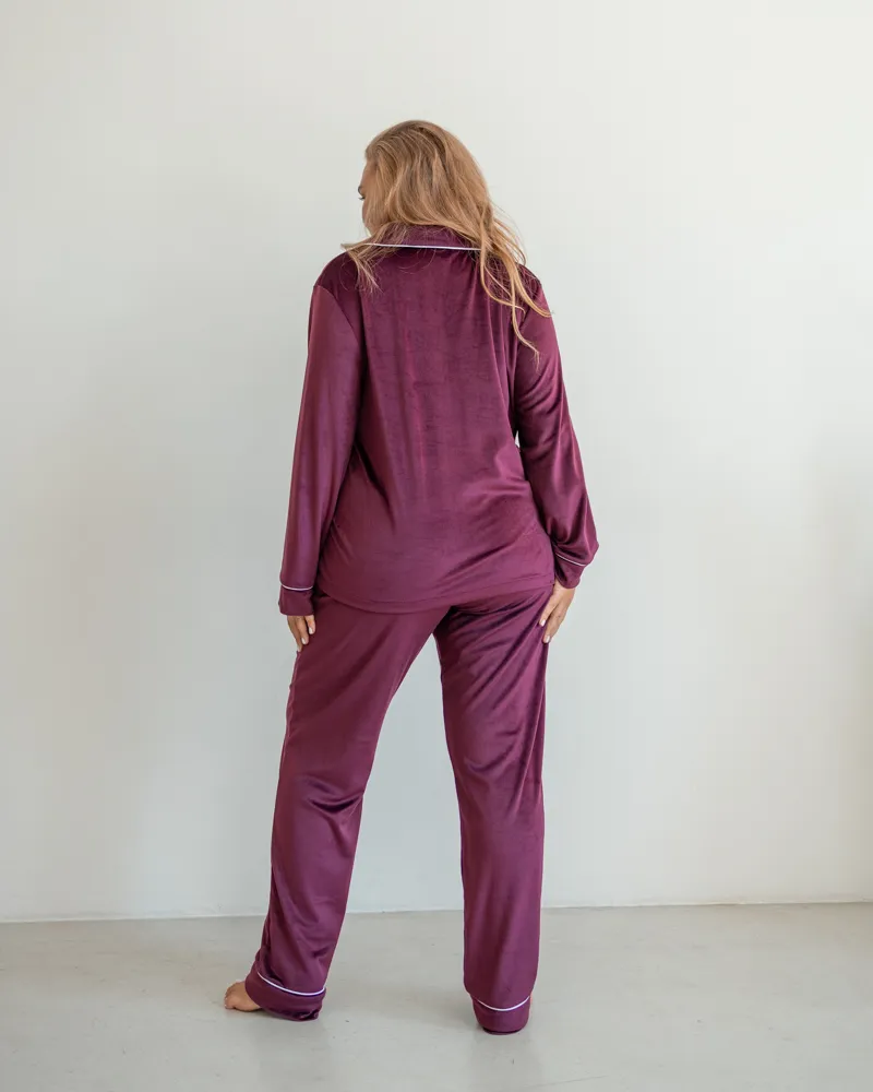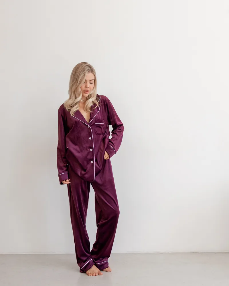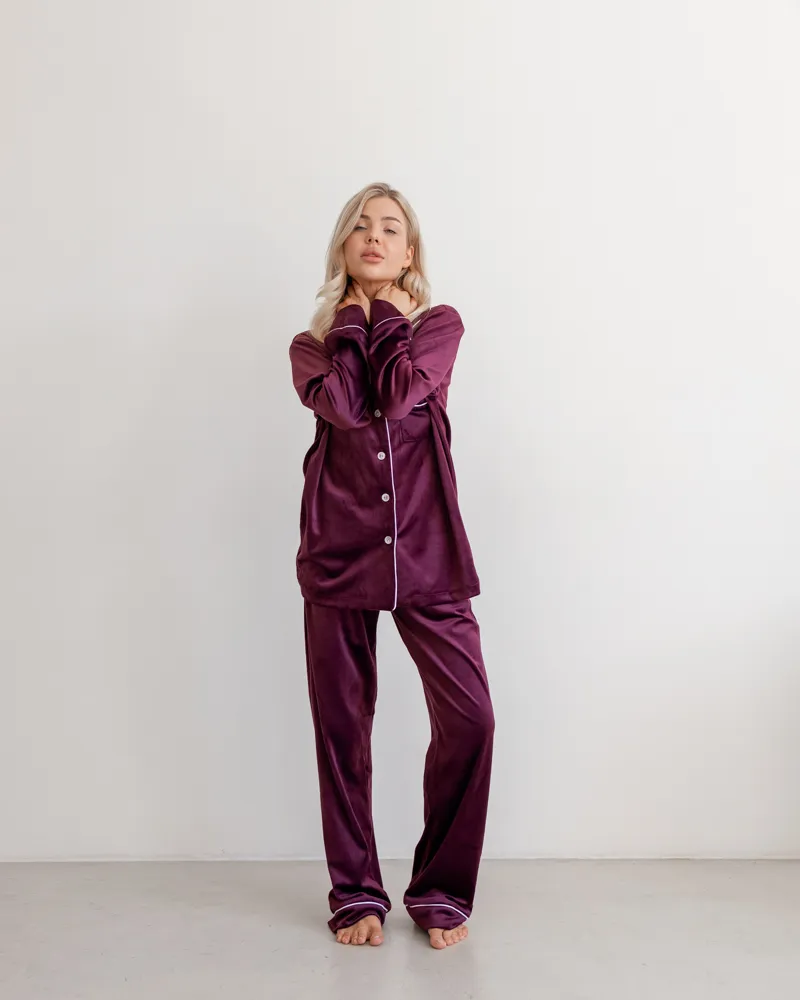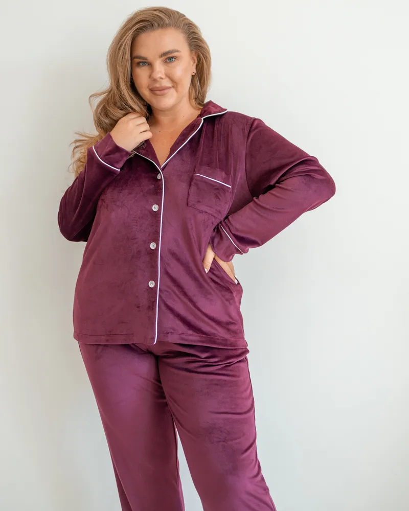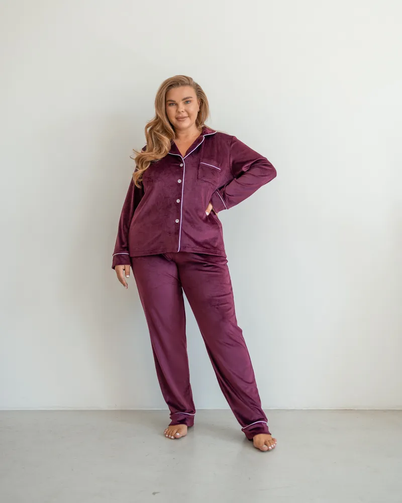 Головна / Каталог / Жінкам / Жіноча піжама / Піжама велюр Jeny на ґудзиках Марсала