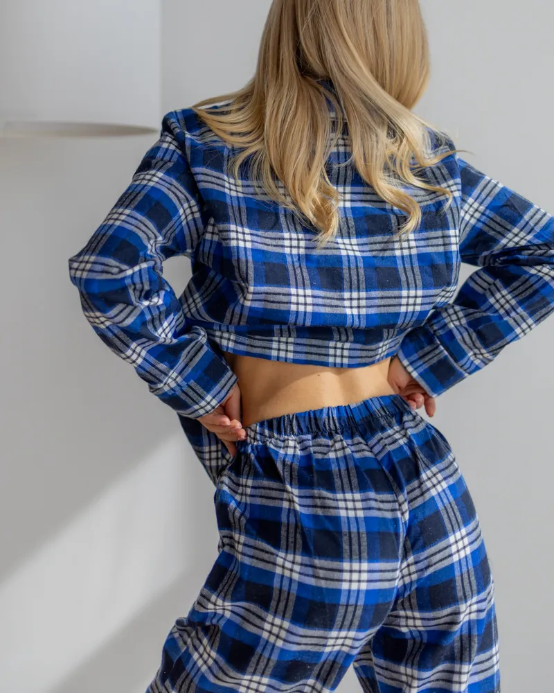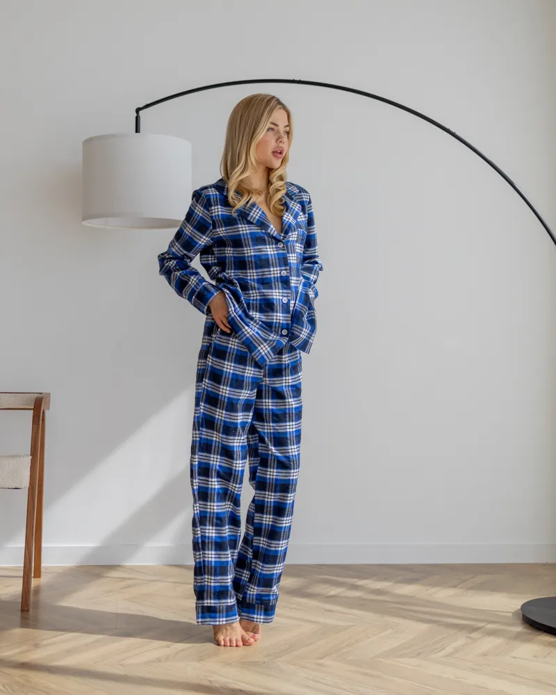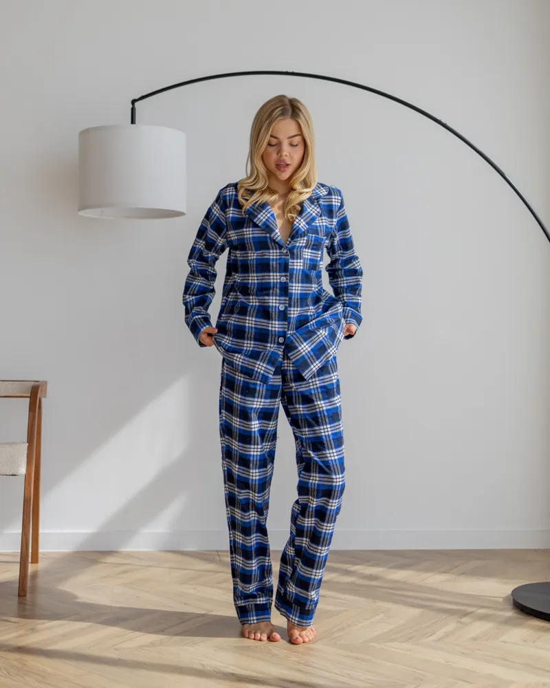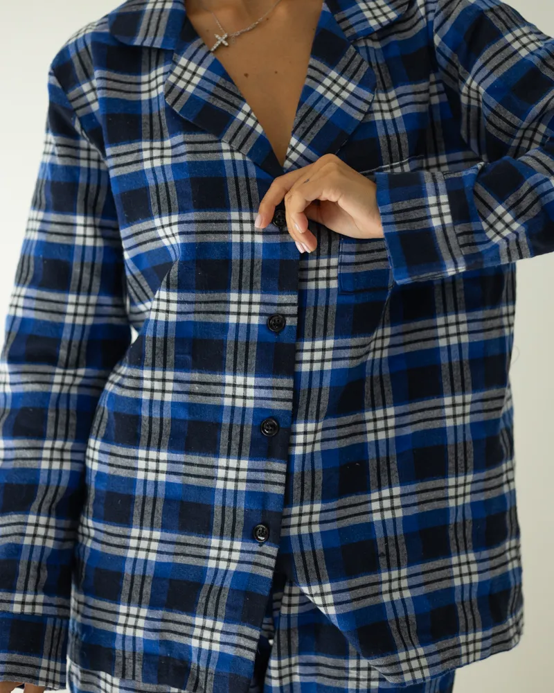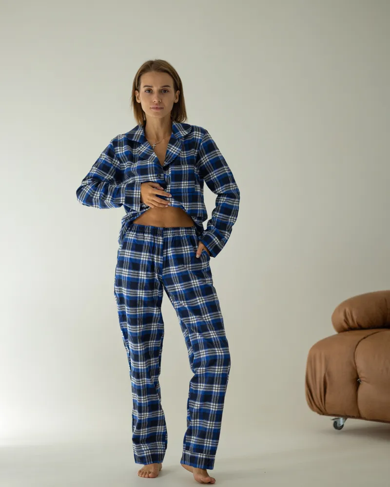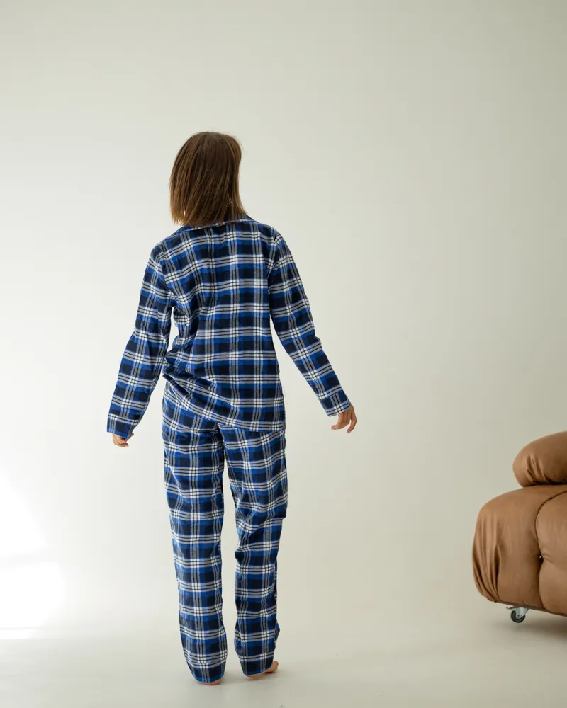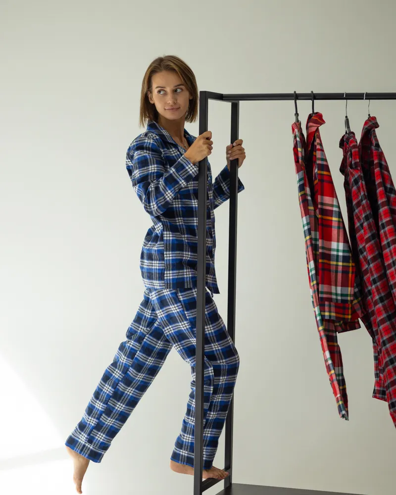 Піжамний костюм у клітинку з якісної тканини байка.Комплект: зручна сорочка на ґудзиках з коміром, штани прямого крою з кишенями на резинці.Тканина байка преміум класу, м'яка, приємна на дотик, не кашлатиться.Піжама ідеально підійде для холодів для дому та сну.