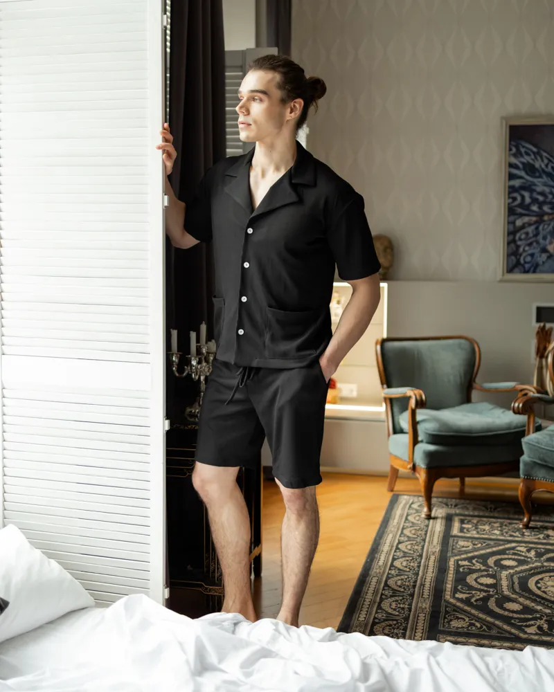 Головна / Каталог / Чоловікам / Чоловіча піжама / Піжамний костюм Чоловічий (тканина: вафельний трикотаж) Чорний