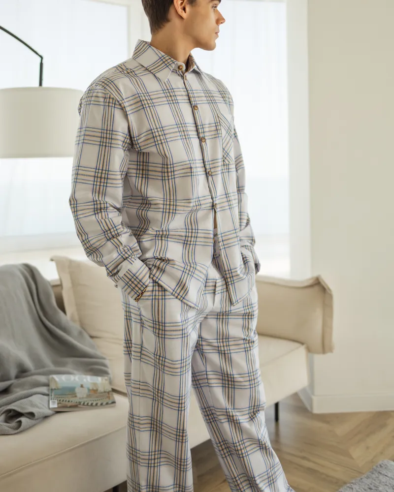 Чоловіча піжама в клітинку з якісної турецької тканини байка.