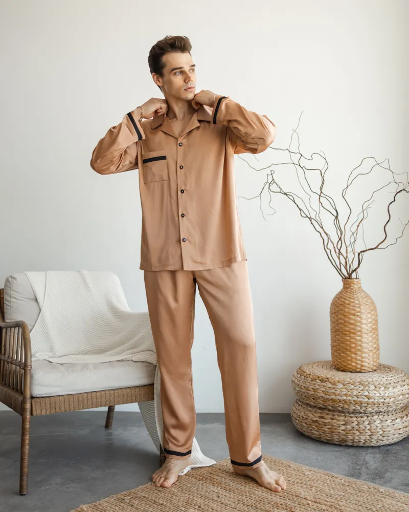 Чоловіча піжама з кантом з якісної тканини шовк Армані.