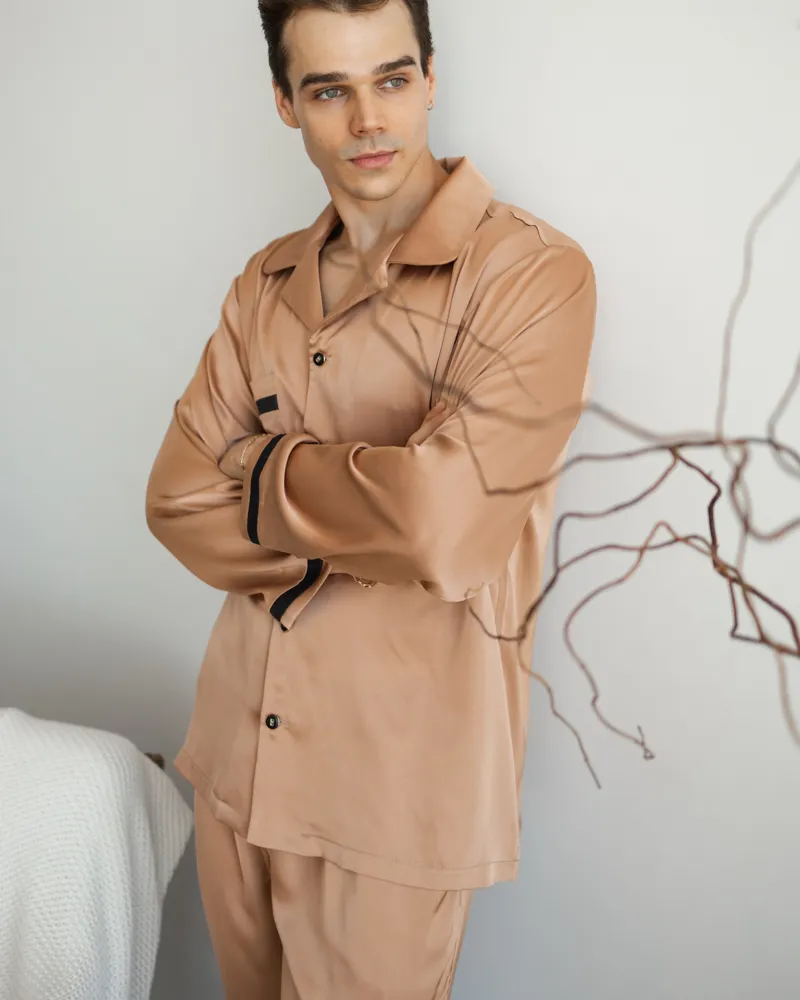 Головна / Каталог / Чоловікам / Чоловіча піжама / Чоловіча піжама "Victor" тканина шовк Армані Бежевий