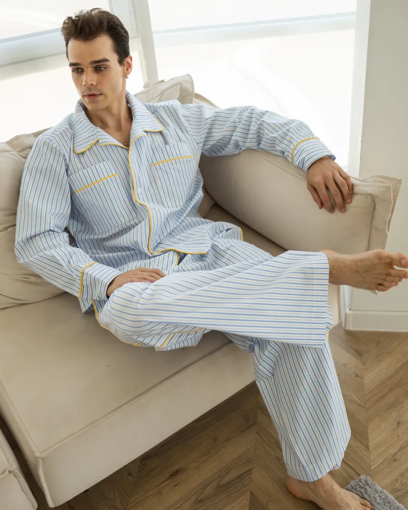 Чоловіча піжама з натуральної тканини бавовна в смужку.