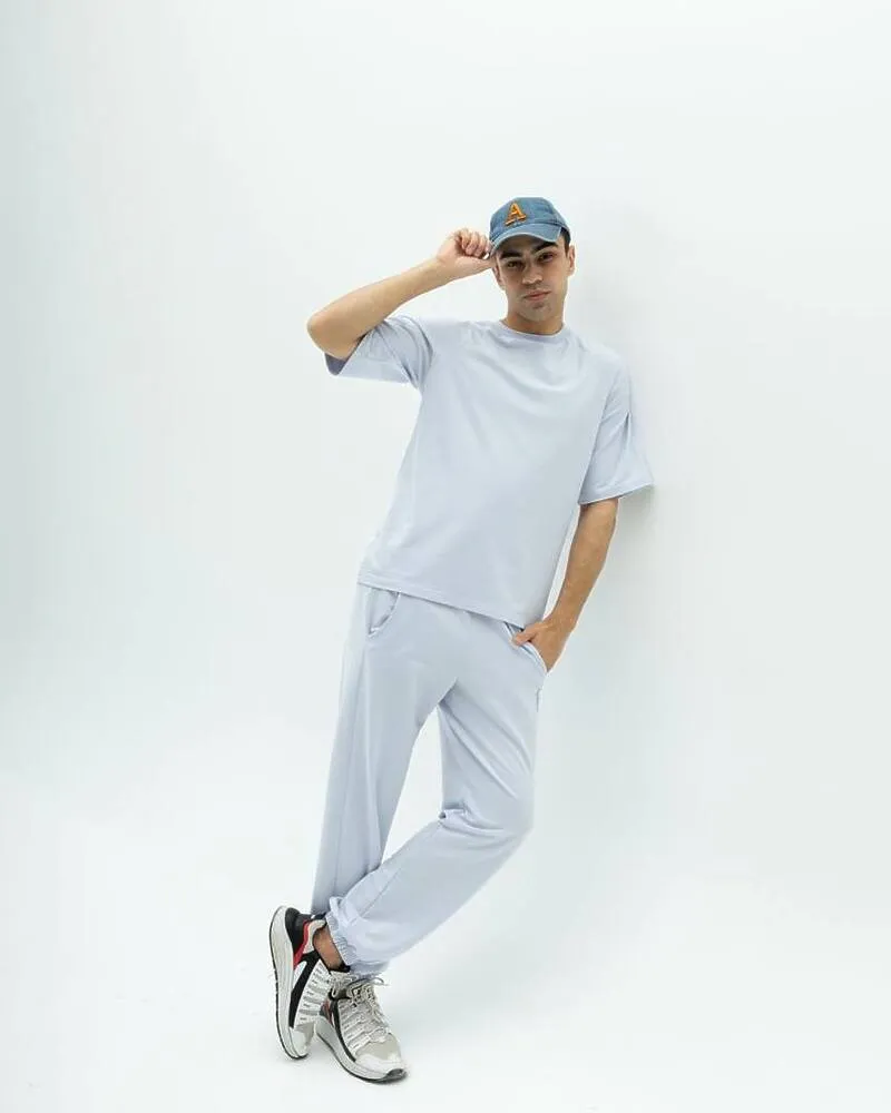 Комплект: футболка + вільні штани з кишенями та резинками на ногах.