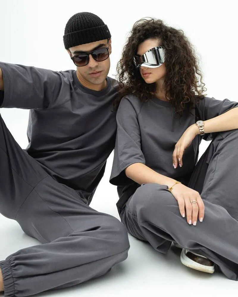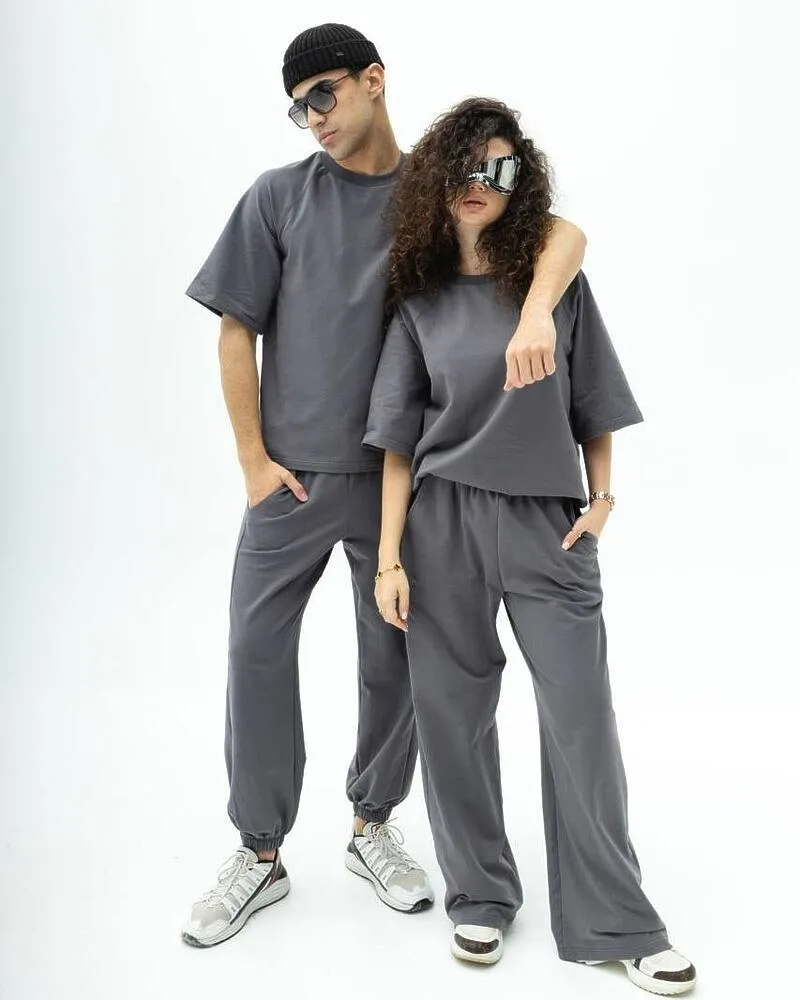 Комплект: футболка + вільні штани з кишенями та резинками на ногах.