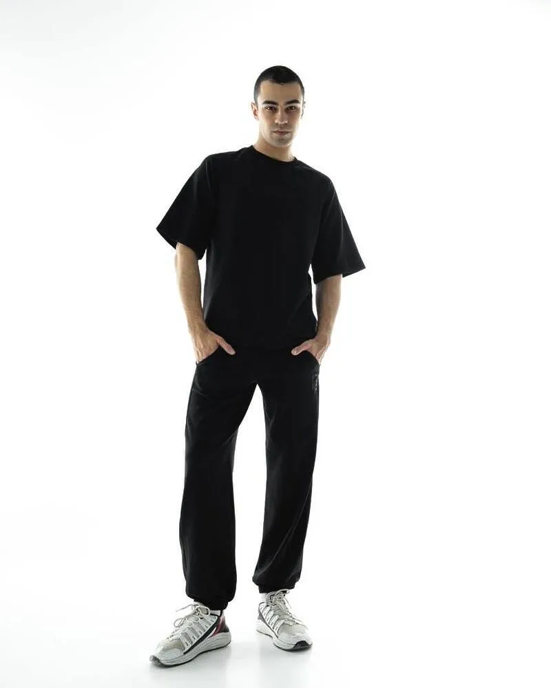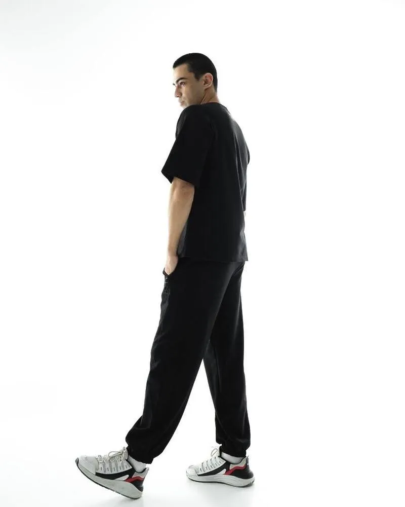 Комплект: футболка + вільні штани з кишенями та резинками на ногах.