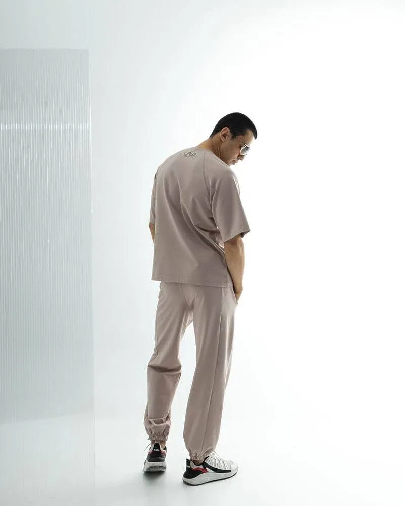 Комплект: футболка + вільні штани з кишенями та резинками на ногах.