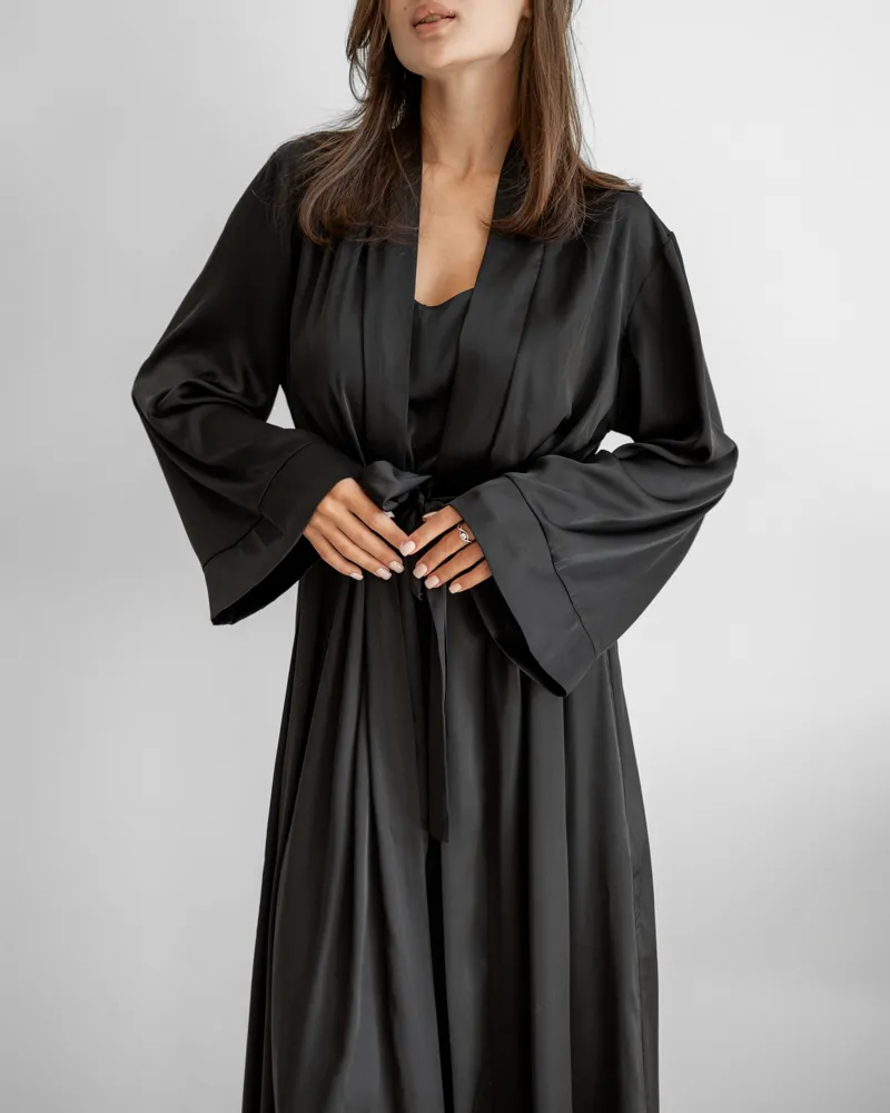 Нічна сорочка чудово підкреслює жіночу фігуру і може поєднуватися з халатом.