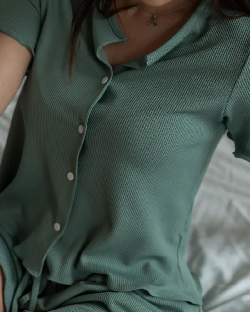 Головна / Каталог / Жінкам / Піжамний костюм / Піжамний костюм "Selena" (тканина: вафельний трикотаж) Зелений