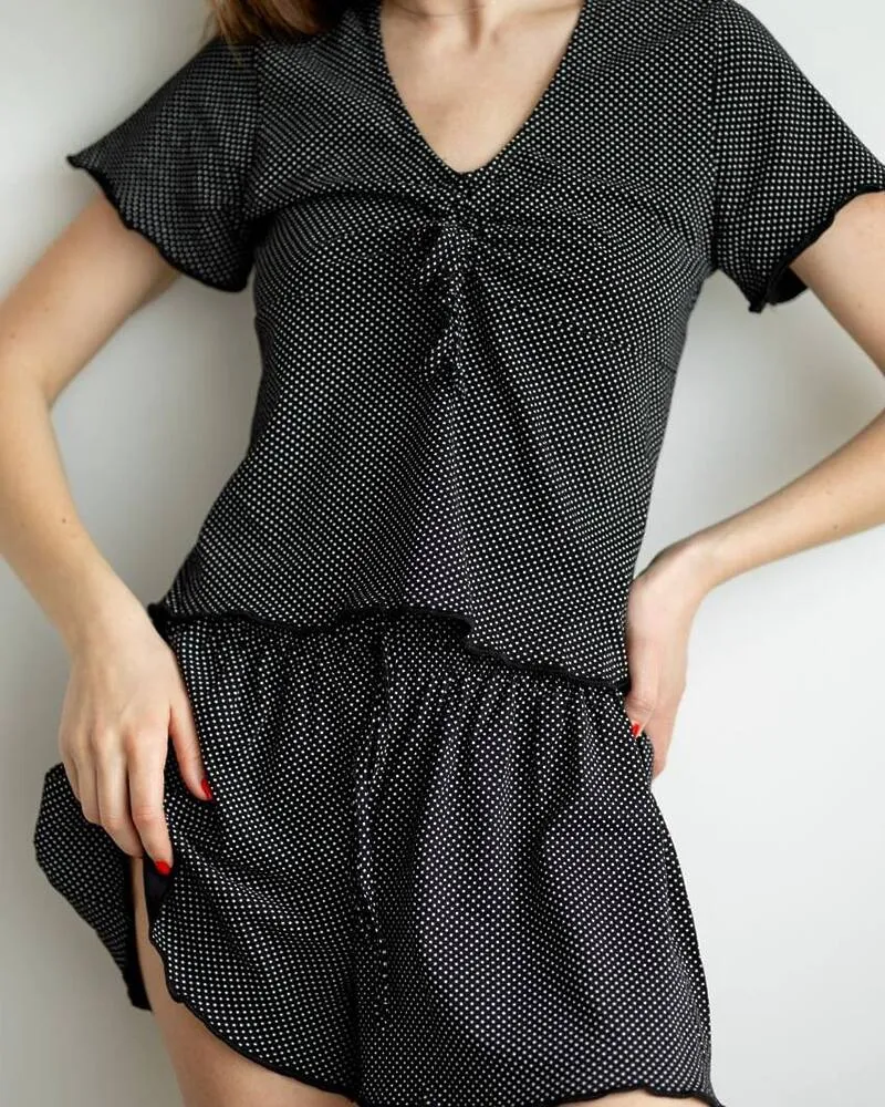 Піжама "Flowers" чорно-білий горох