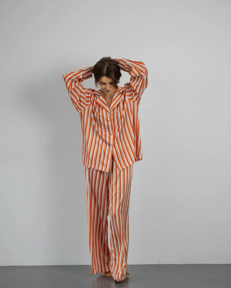 Піжама "Kleo" в смужку шовк Армані + хустинка Помаранчевий