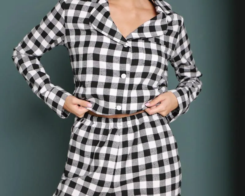 Піжамний костюм у клітинку з якісної тканини байка.