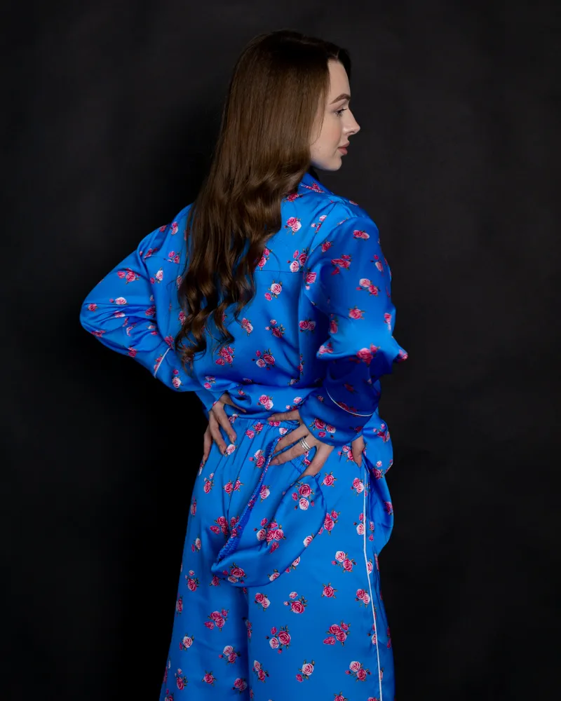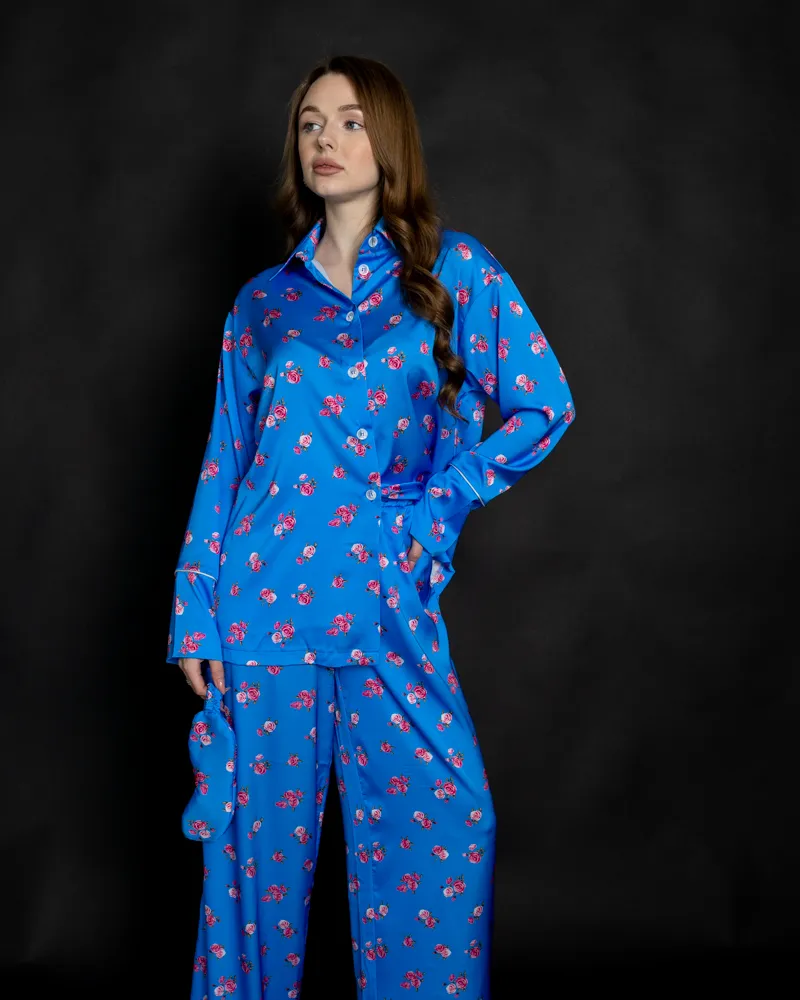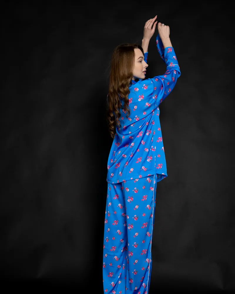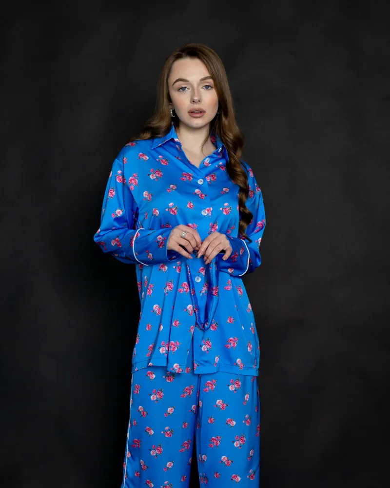 Піжама шовк Армані Італія преміум-класу Flowers Синій