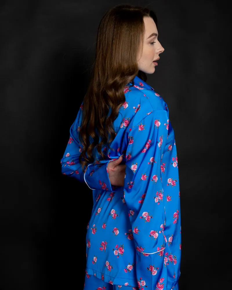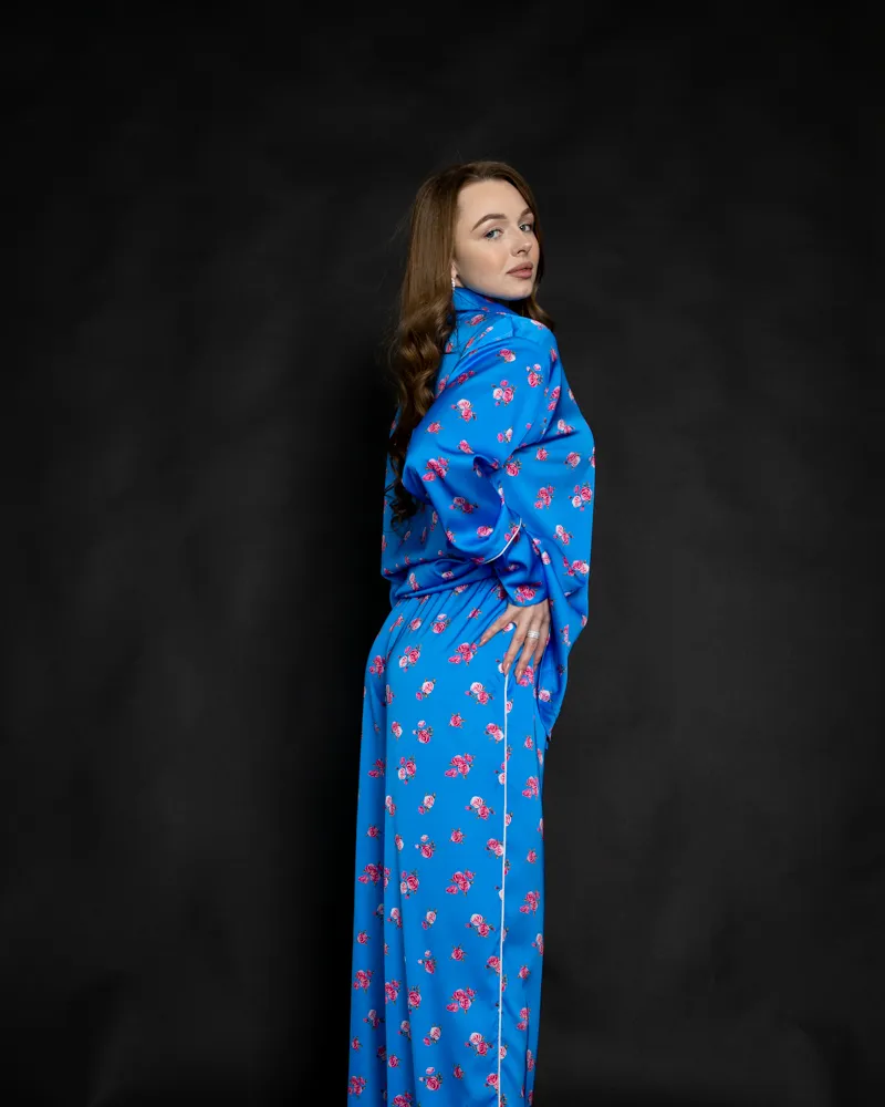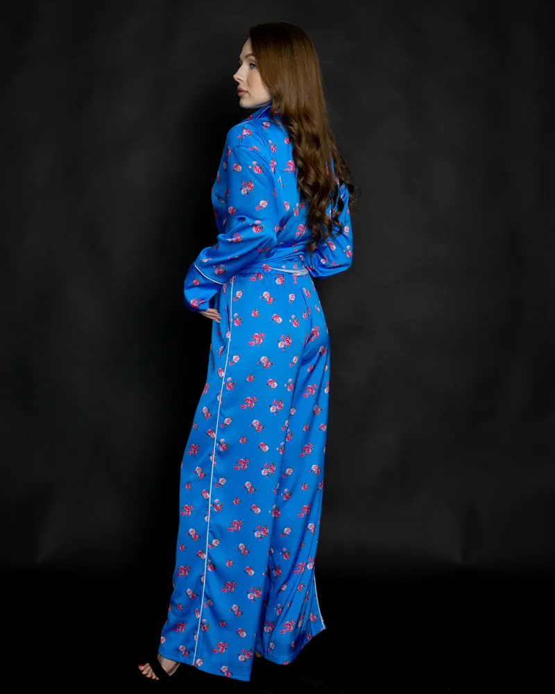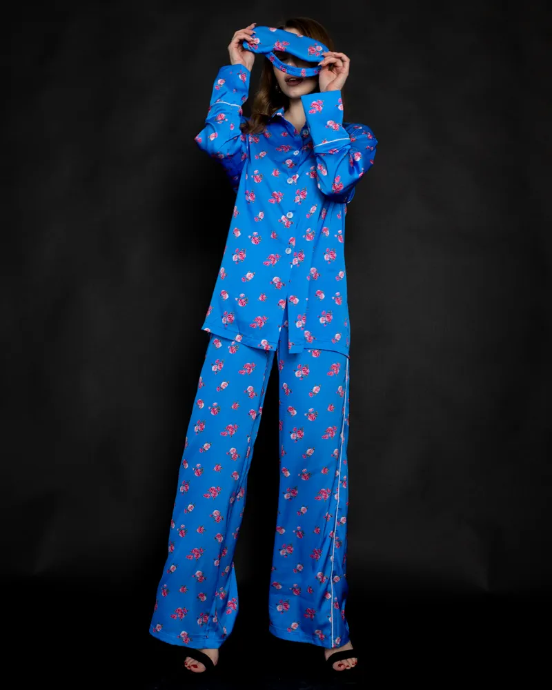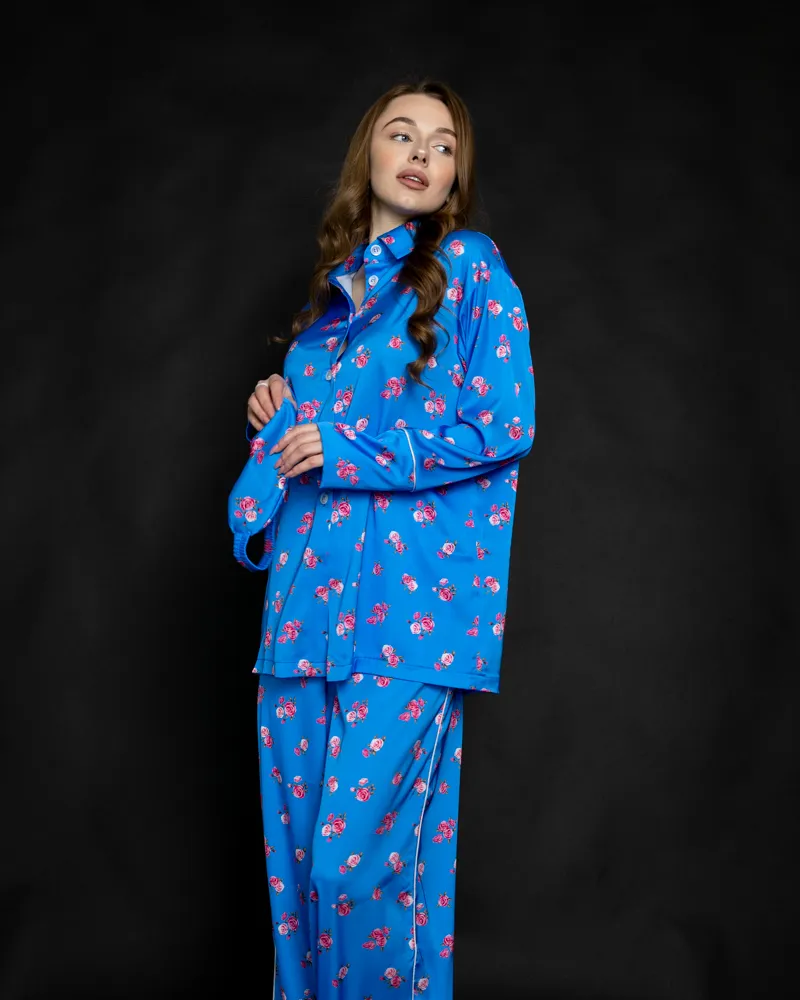 Піжама шовк Армані Італія преміум-класу Flowers Синій